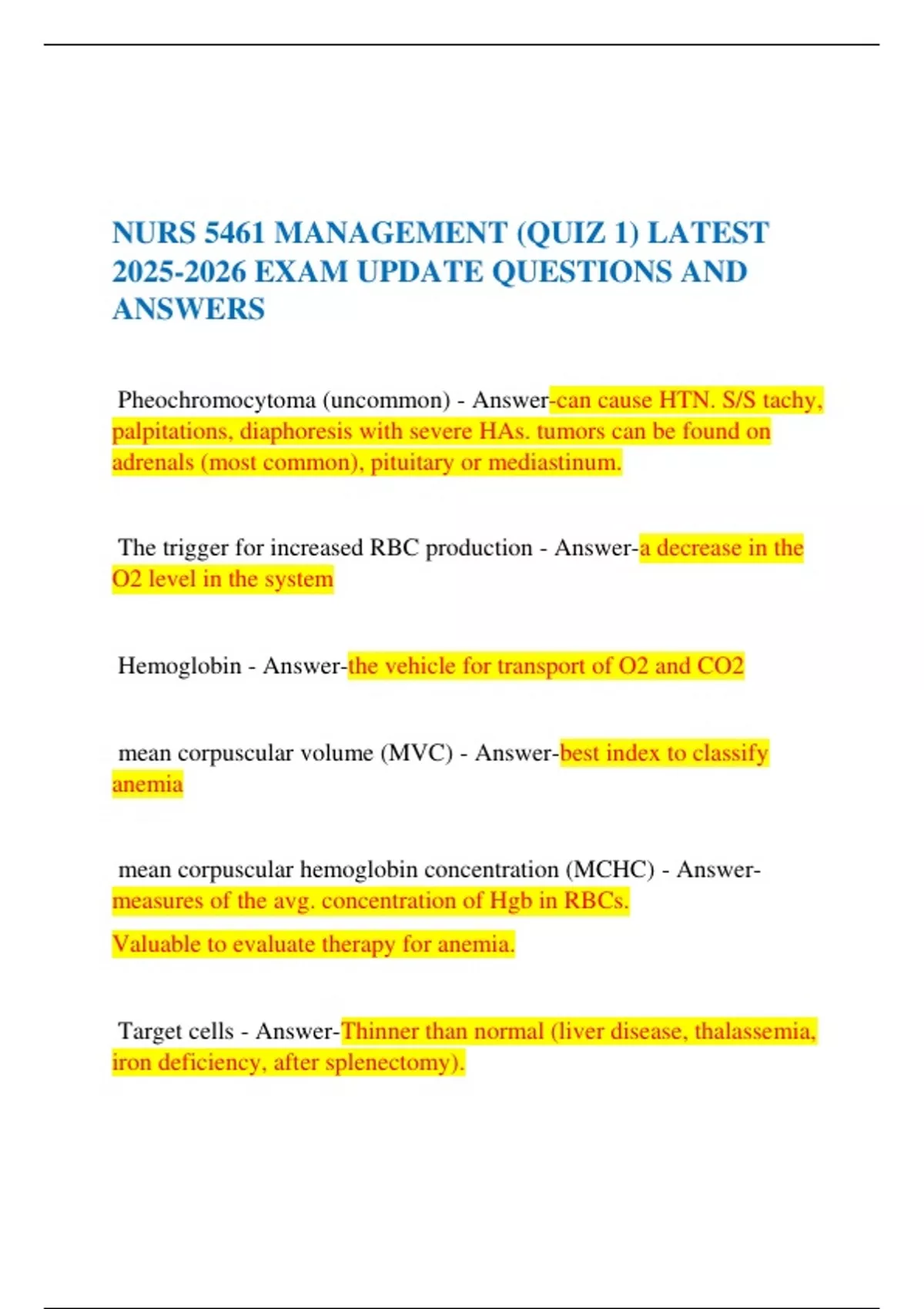 NURS 5461 MANAGEMENT (QUIZ 1) LATEST EXAM UPDATE QUESTIONS AND ANSWERS NURS 5461 MANAGEMENT (QUIZ 1) LATEST EXAM UPDATE QUESTIONS AND ANSWERS NURS 5461 MANAGEMENT (QUIZ 1) LATEST EXAM UPDATE QUESTIONS AND ANSWERS