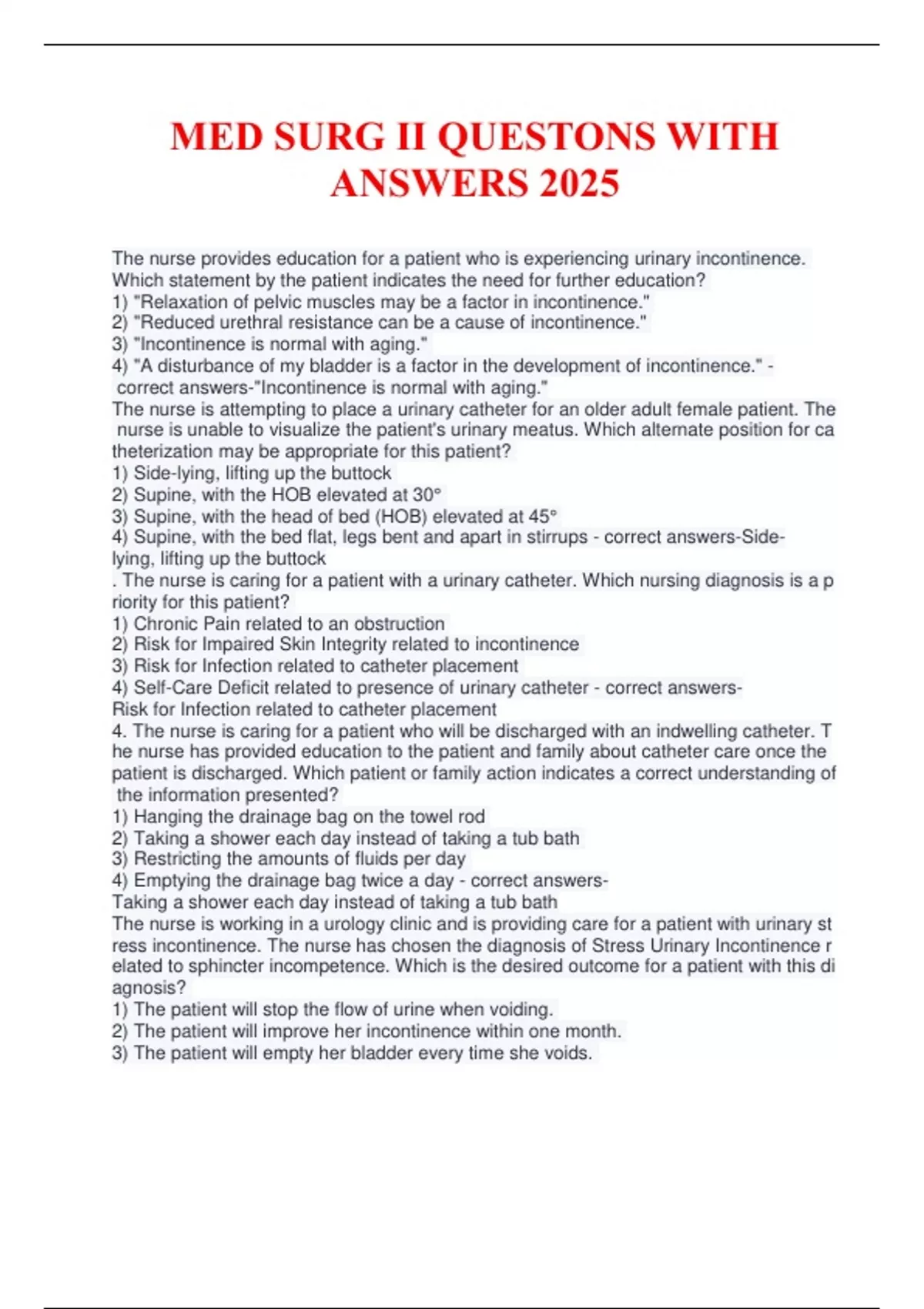 AcorrectAanswers-"IncontinenceAisAnormalAwithAaging."