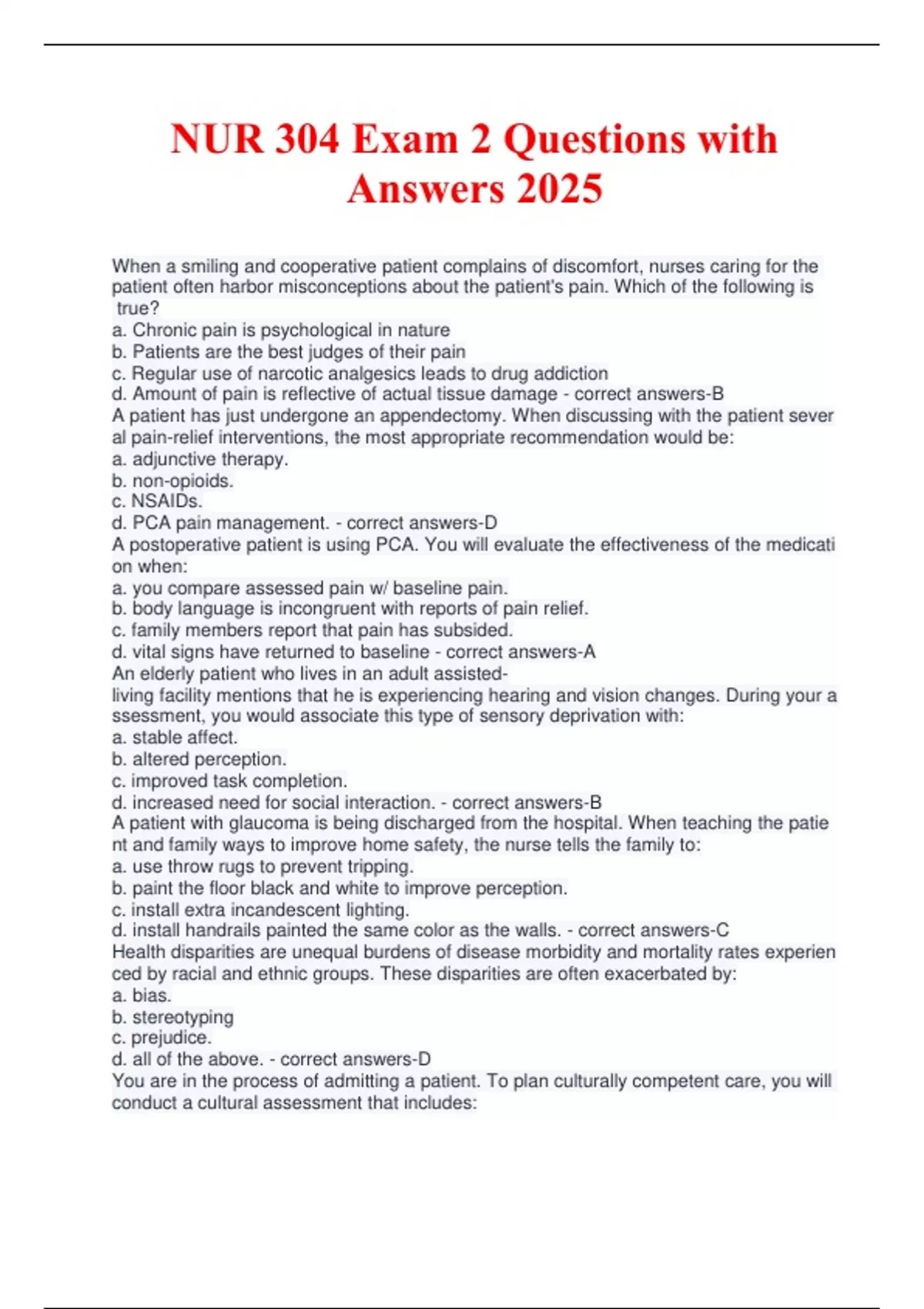 NUR 304 Exam 2 Questions with