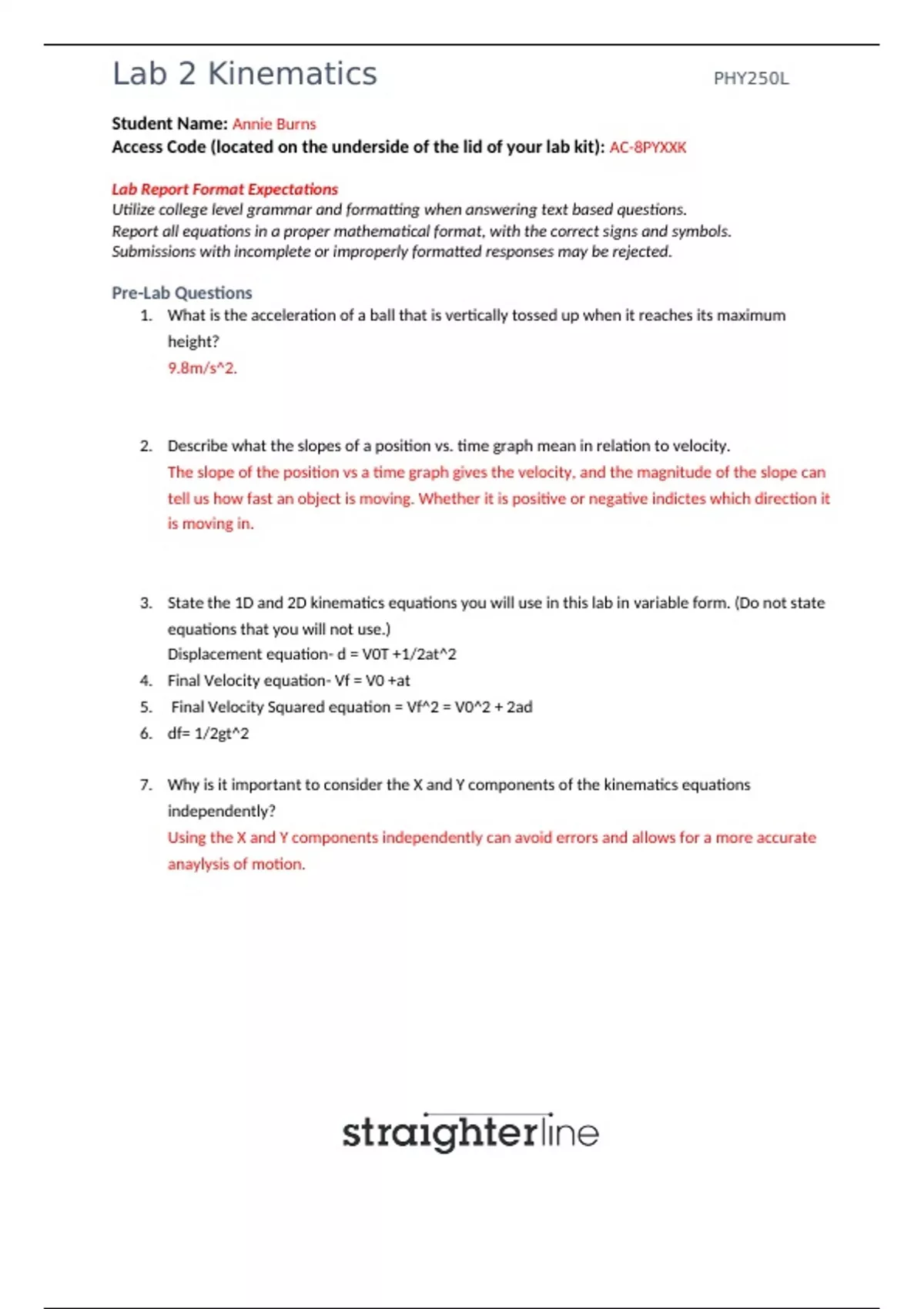 PHY250L Lab 2 Kinematics SPRING 2024 (Straighterline)