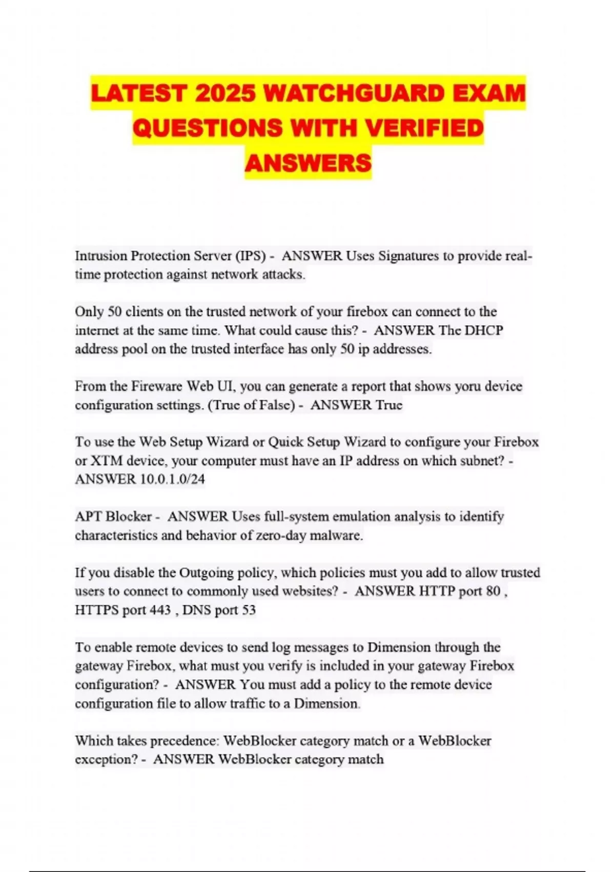 ALL WATCHGUARD PACKAGED EXAMS: QUESTION S WITH 100% VERIFIED ANSWERS