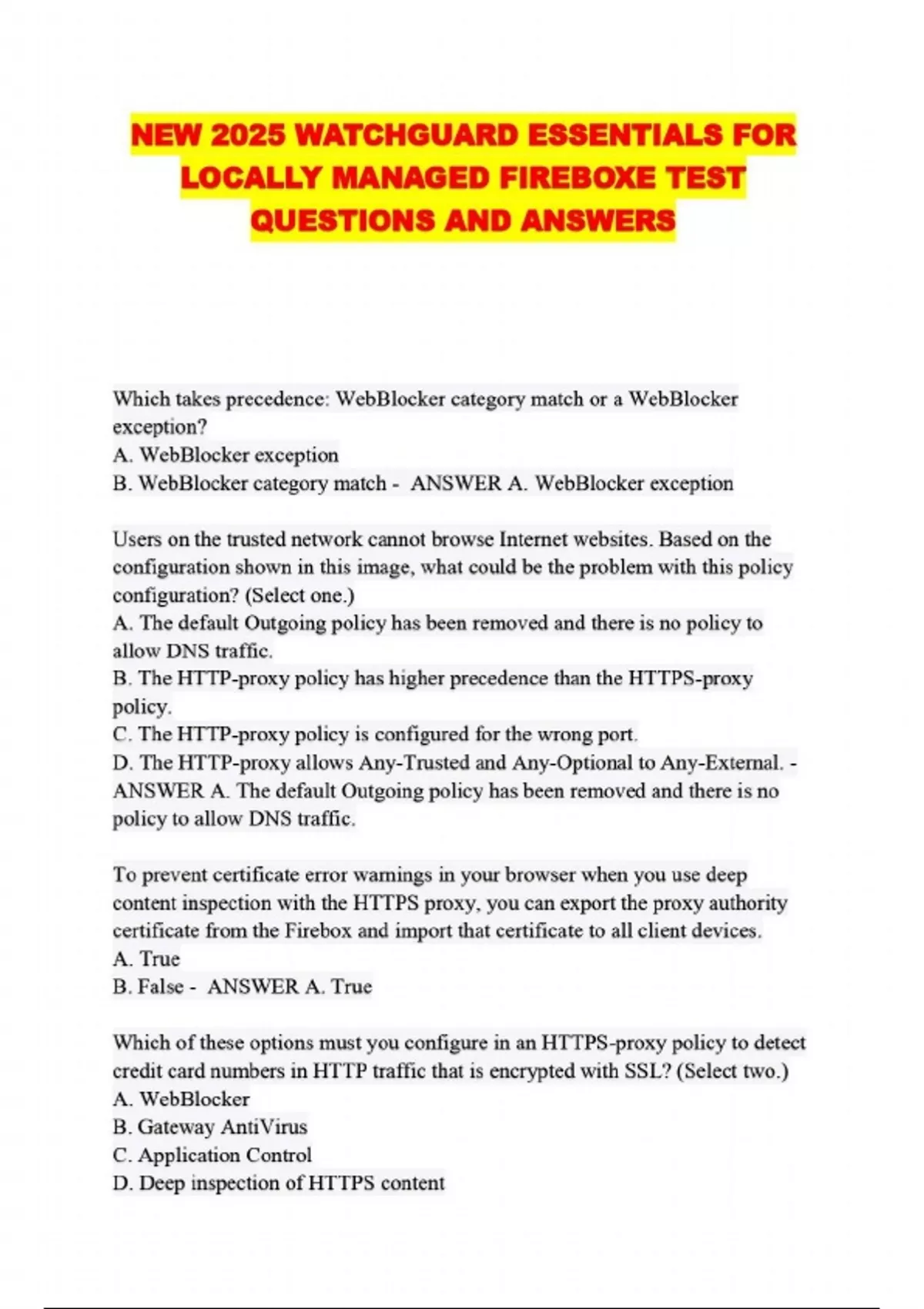NEW 2025 WATCHGUARD ESSENTIALS FOR LOCALLY MANAGED FIREBOXE TEST QUESTIONS AND ANSWERS....