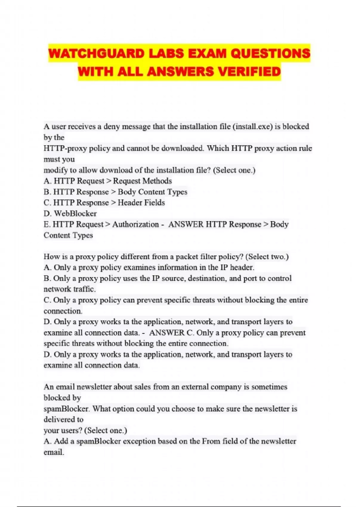 WATCHGUARD LABS EXAM QUESTIONS WITH ALL ANSWERS VERIFIED