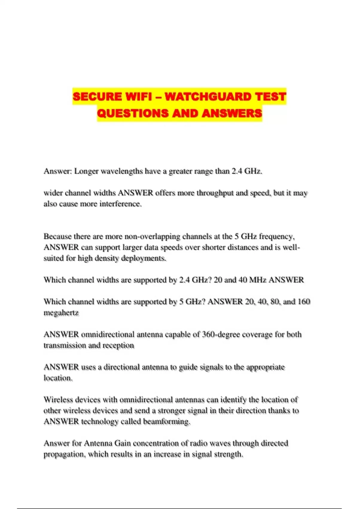 Which channel widths are supported by 5 GHz? ANSWER 20, 40, 80, and 160