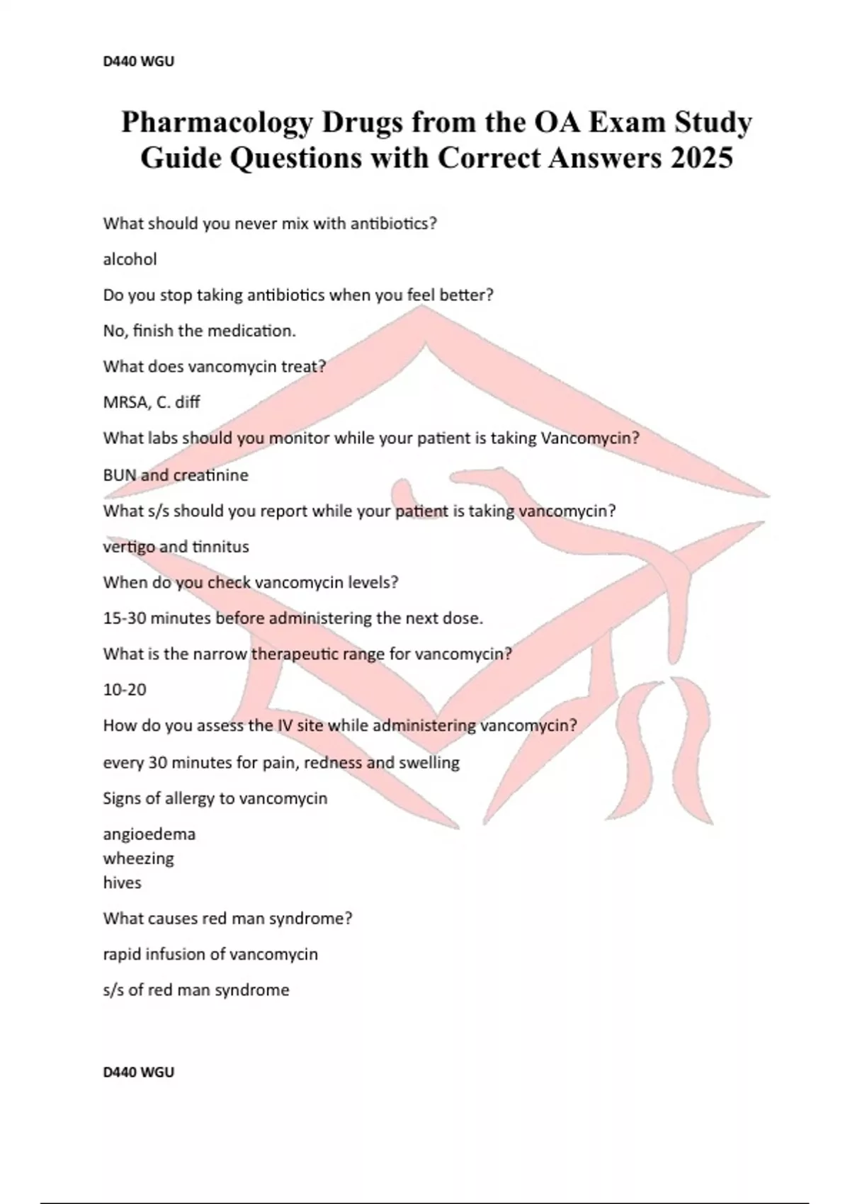 Pharmacology Drugs from the OA Exam Study Guide Questions with Correct Answers 2025