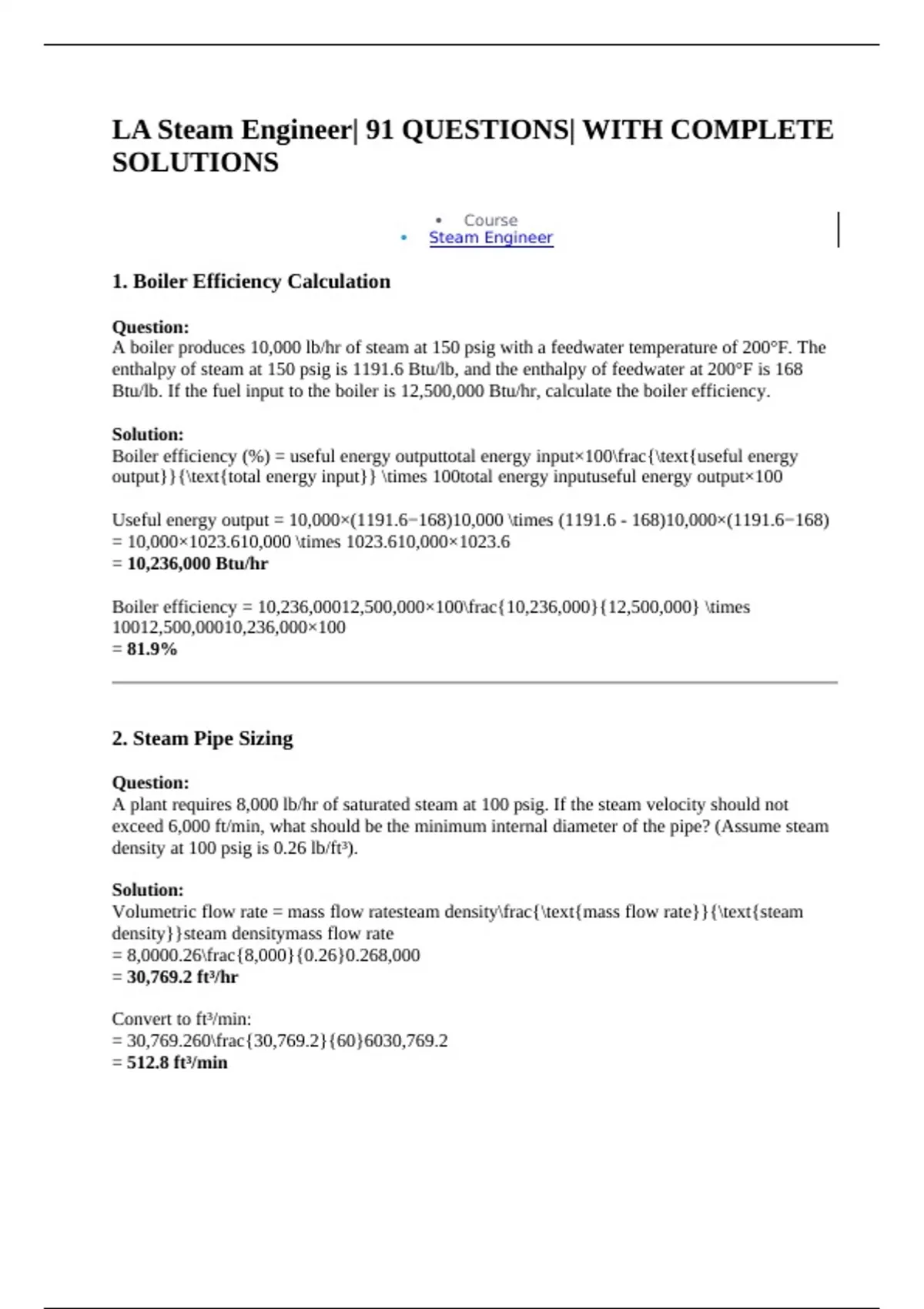 LA Steam Engineer| 91 QUESTIONS| WITH COMPLETE SOLUTIONS