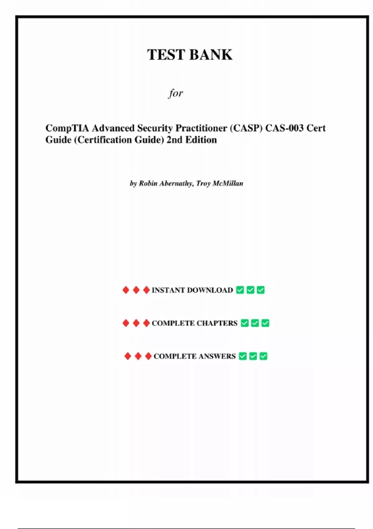 Test Bank for CompTIA Advanced Security Practitioner (CASP) CAS-003 Cert Guide (Certification Guide) 2nd Edition by Robin Abernathy, All Chapters