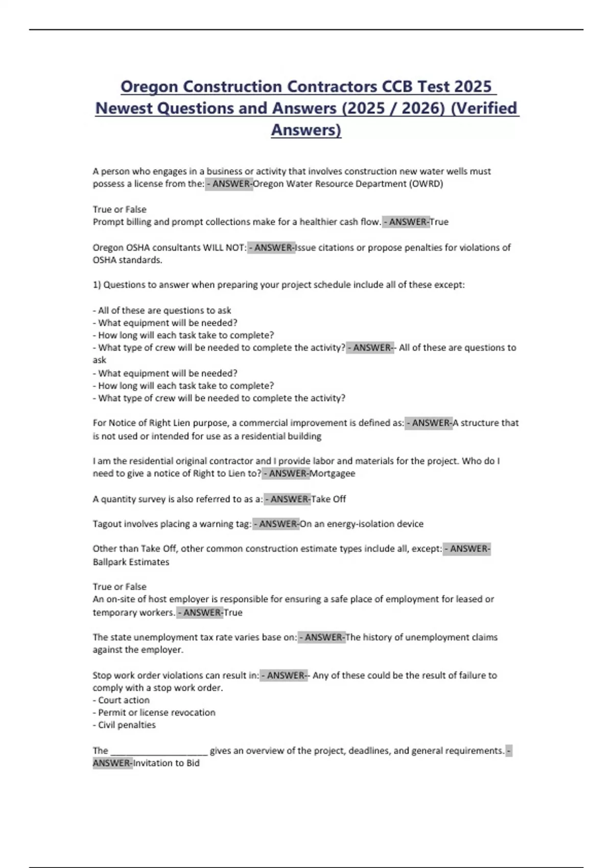 Oregon Construction Contractors CCB Test 2025