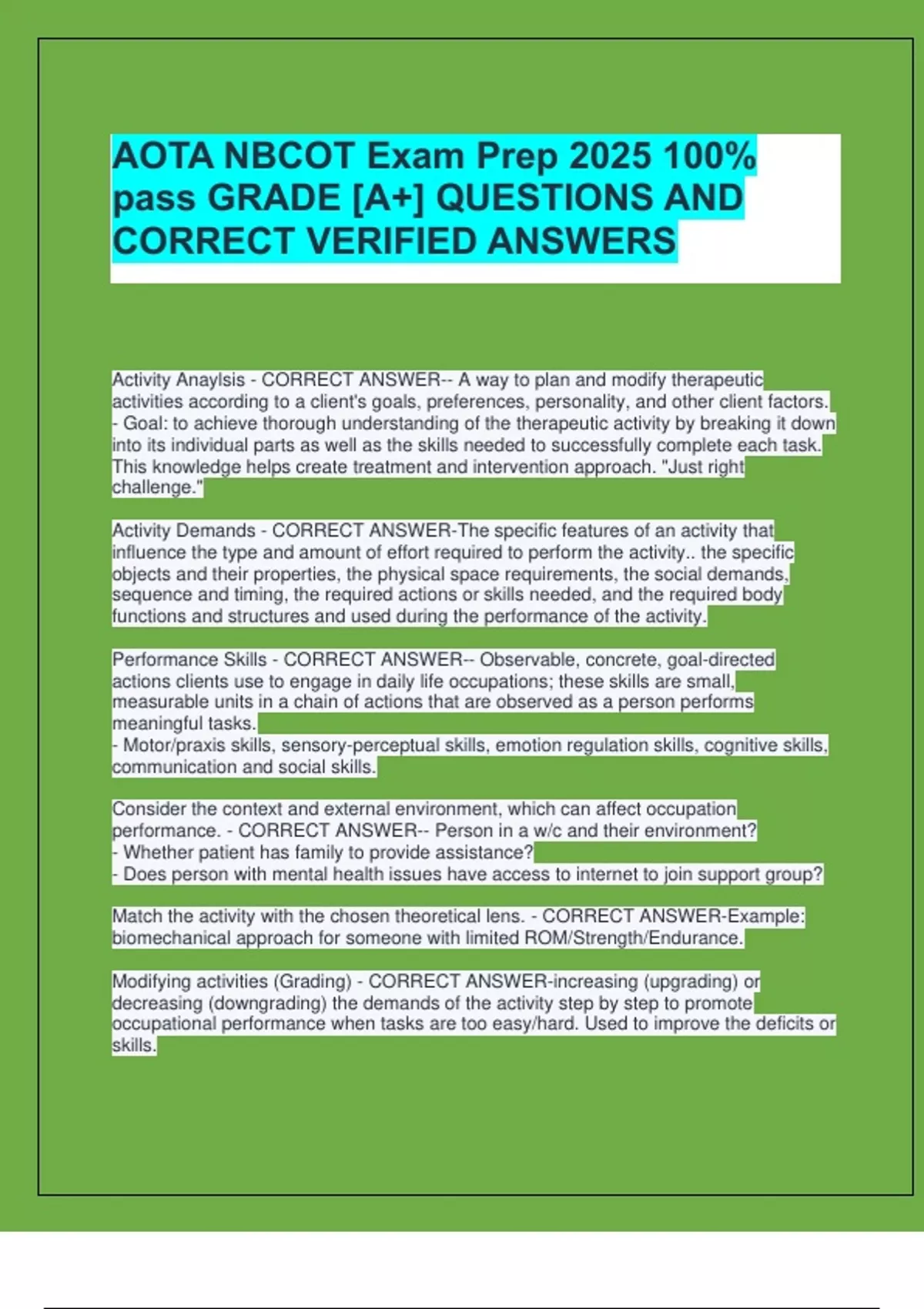 Activity Demands - CORRECT ANSWER-The specific features of an activity that