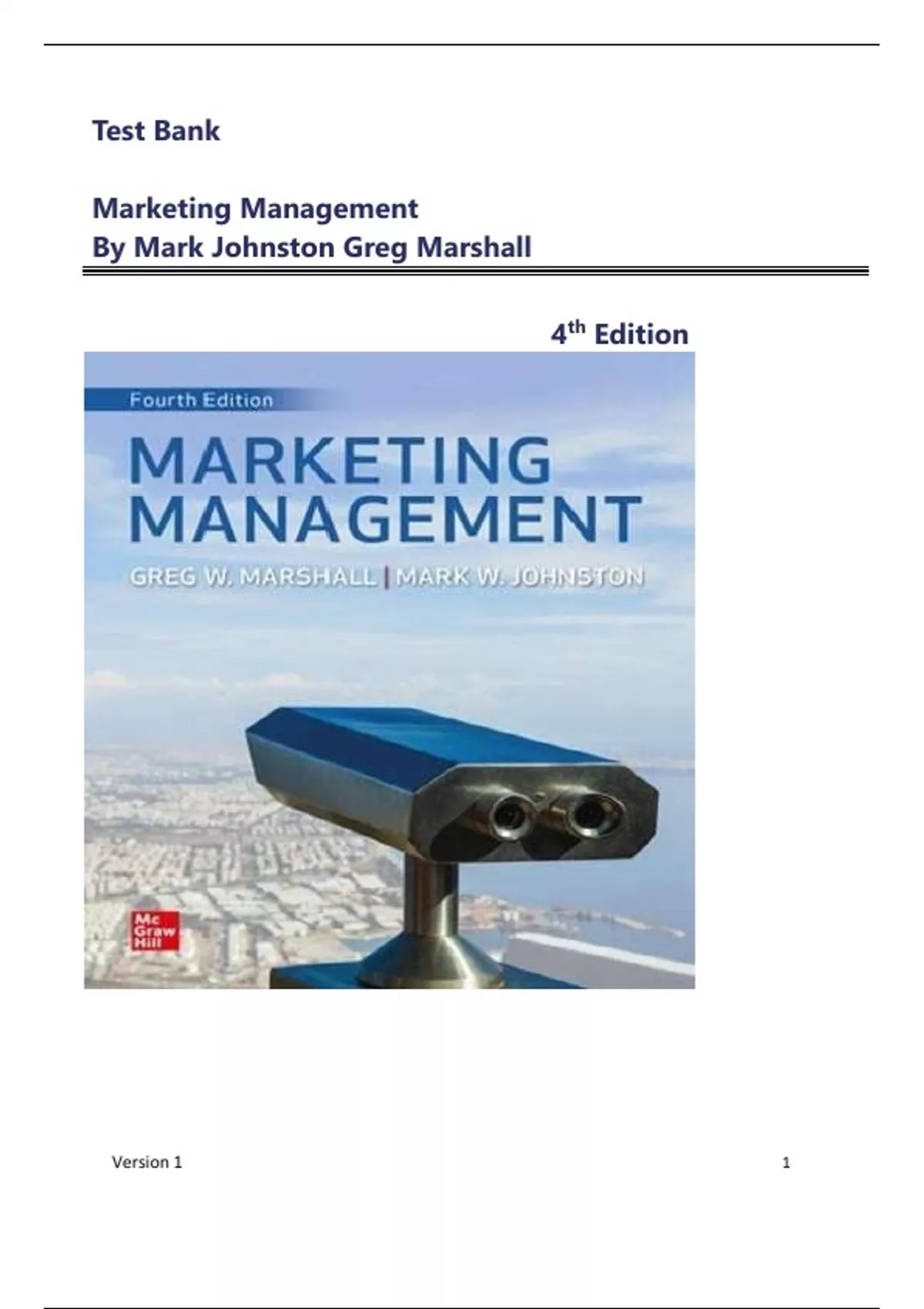 Test Bank for Marketing Management 4th Edition By Mark Johnston Greg Marshall || All Chapters 1-14 || LATEST