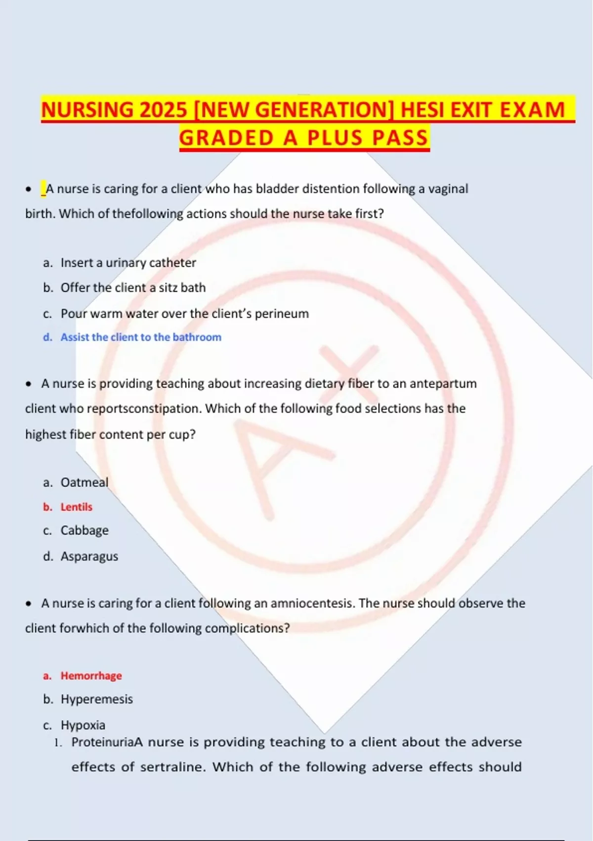 NURSING 2025 [NEW GENERATION] HESI EXIT EXAM GRADED A PLUS PASS
