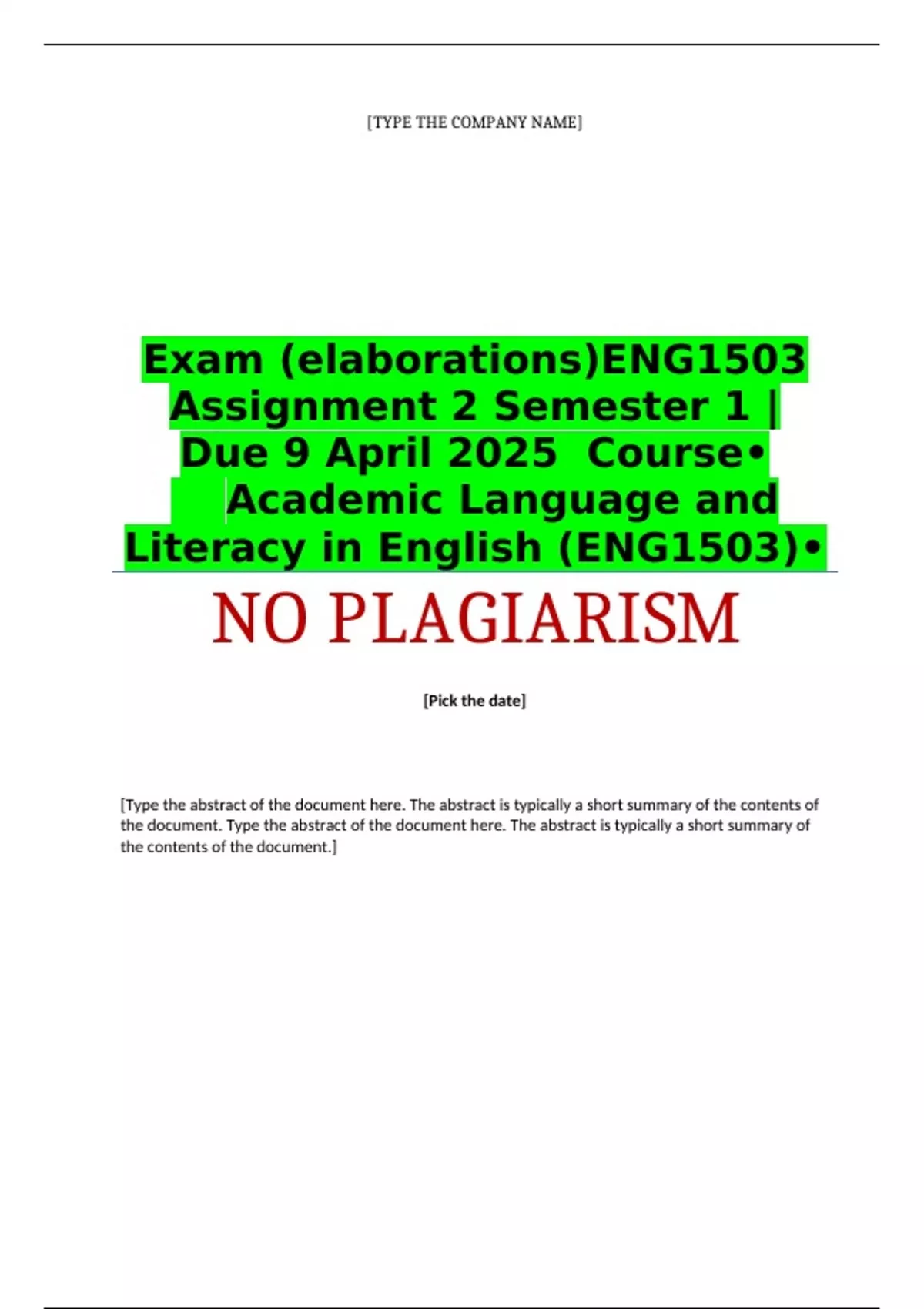 ENG1503 Assignment 2 Semester 1 | Due 9 April 2025. 3 ESSAYS PROVIDED.