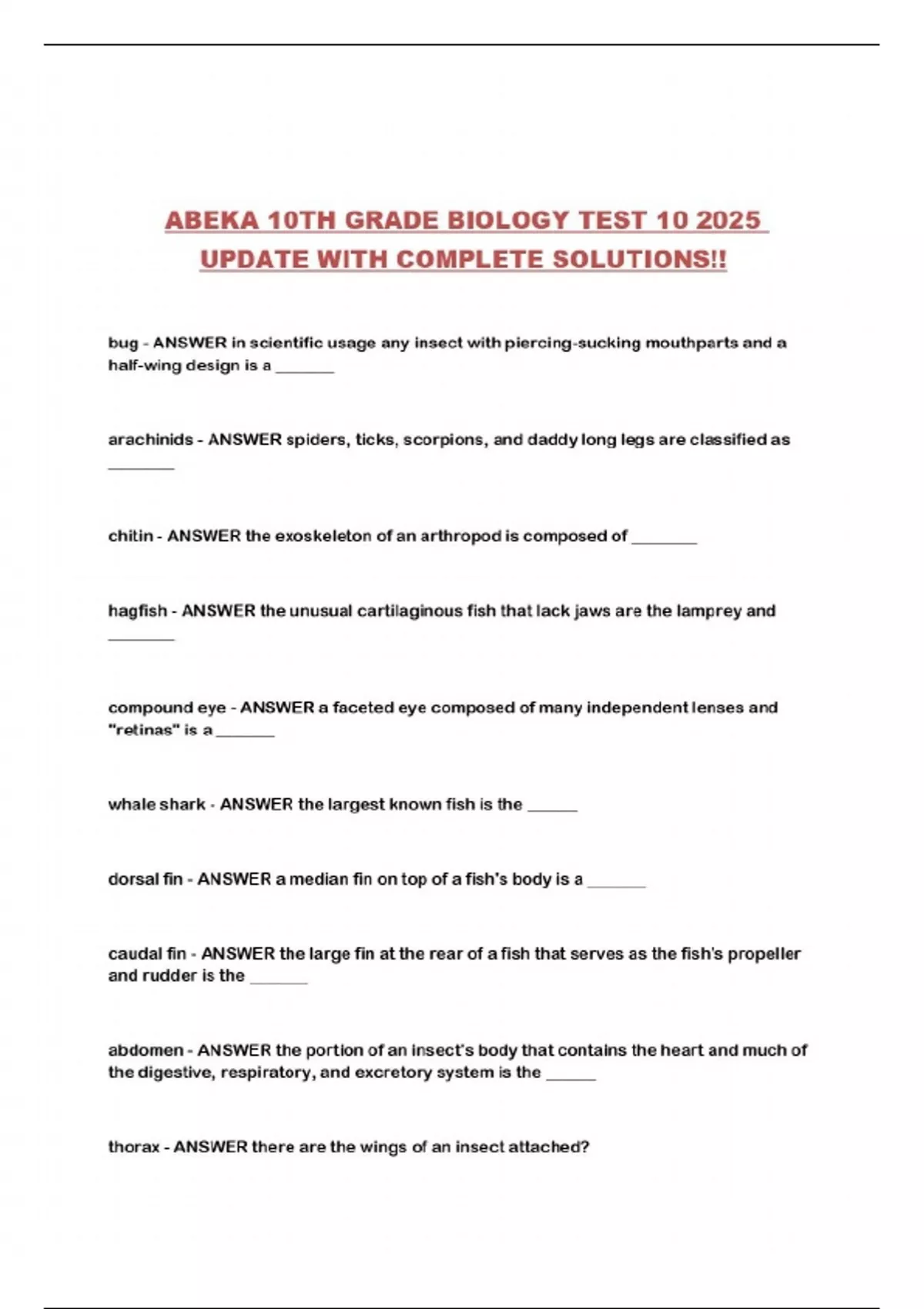 ABEKA 10TH GRADE BIOLOGY TEST 10 2025 UPDATE WITH COMPLETE SOLUTIONS!!