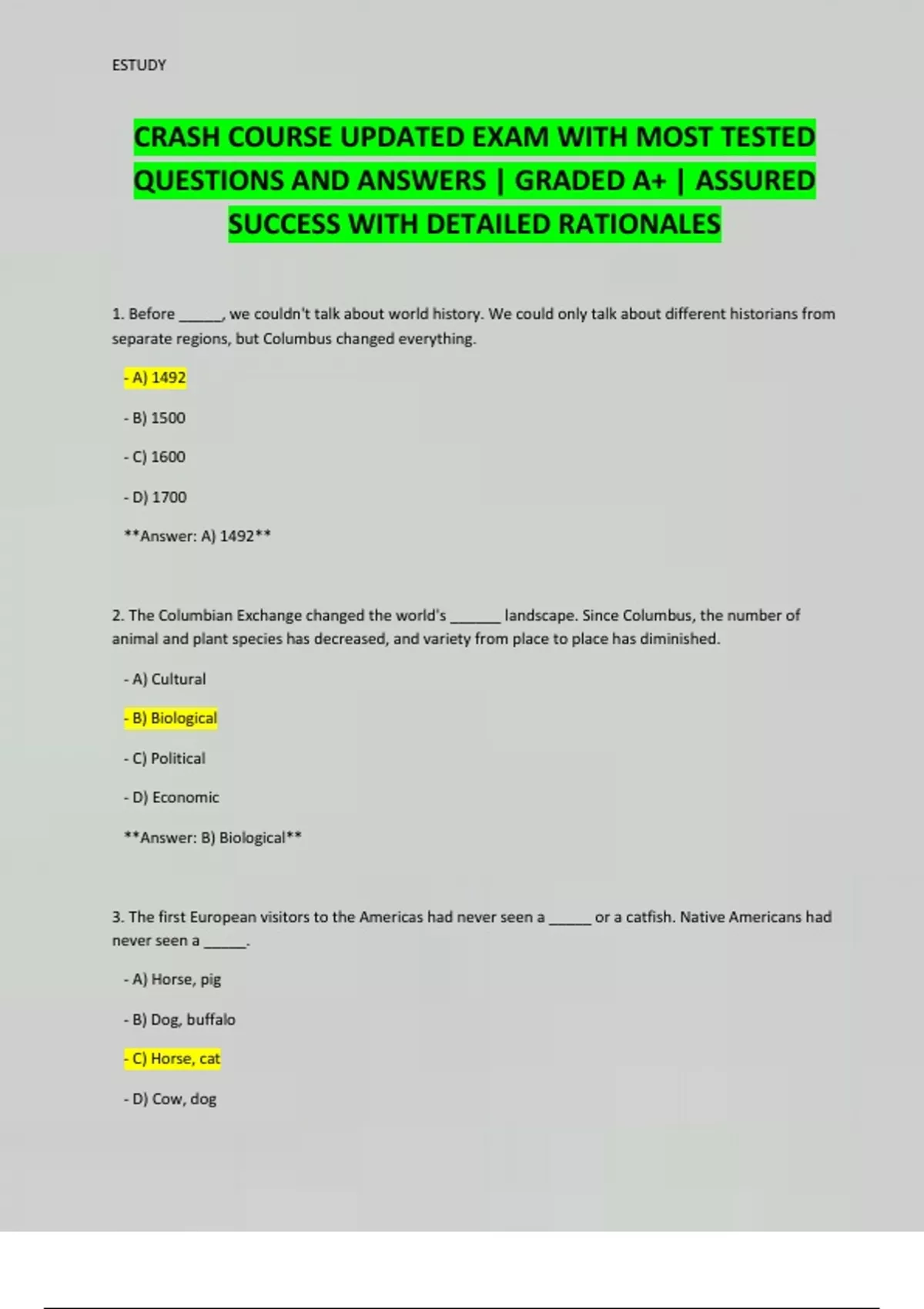 CRASH COURSE UPDATED EXAM WITH MOST TESTED QUESTIONS AND ANSWERS | GRADED A+ | ASSURED SUCCESS WITH DETAILED RATIONALES