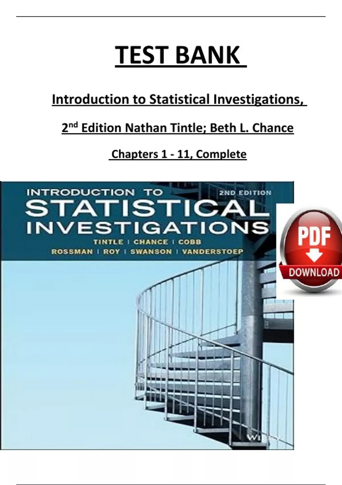 TEST BANK Introduction to Statistical Investigations, 2 nd Edition Nathan Tintle; Beth L. Chance Chapters 1 - 11, Complete