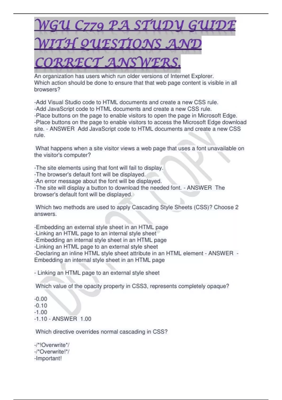WGU C779 PA STUDY GUIDE WITH QUESTIONS AND CORRECT ANSWERS.