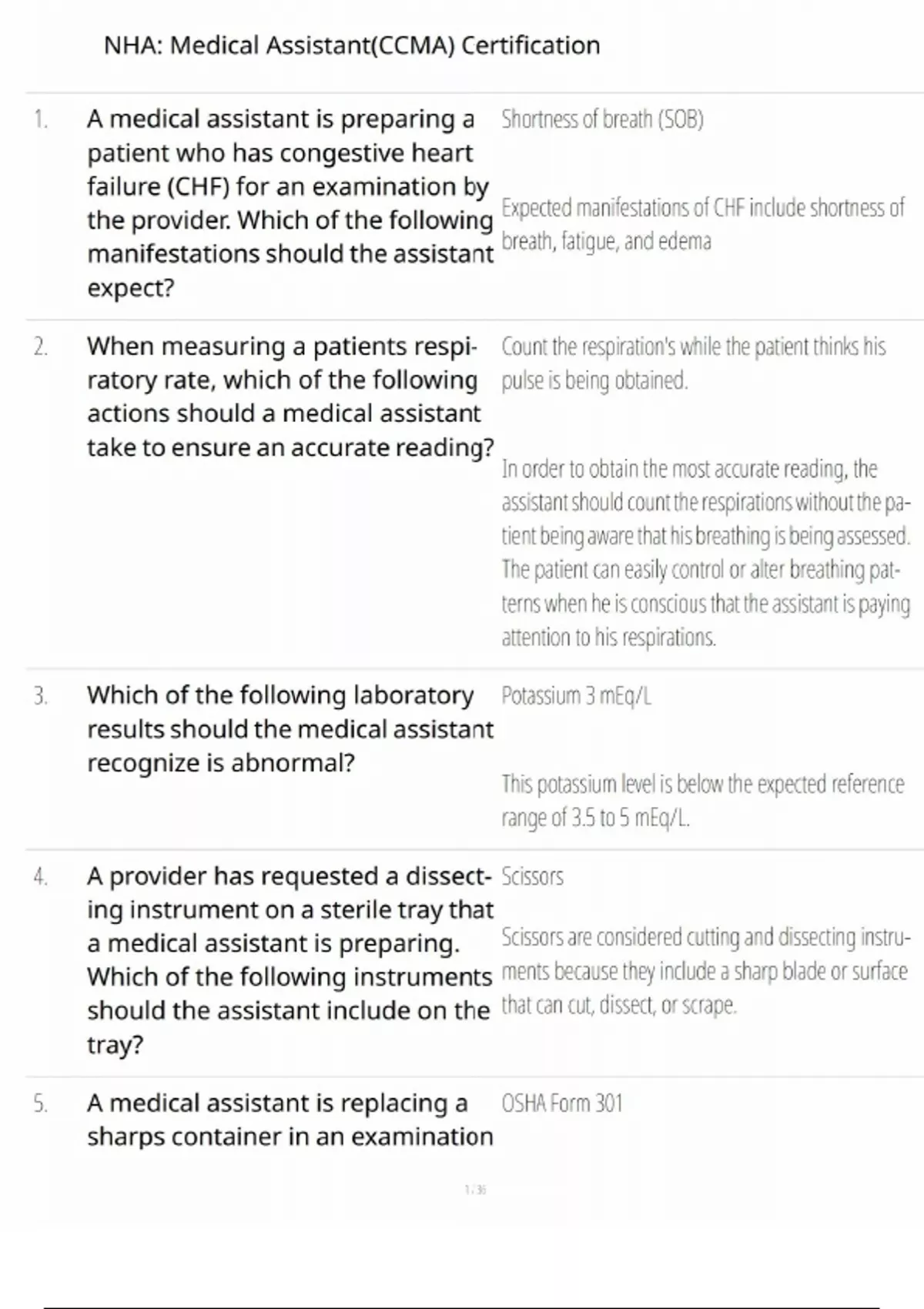 The NHA Medical Assistant (CCMA) Certification exam assesses knowledge and skills required to perform duties in clinical and administrative roles within healthcare settings. Topics include patient care, medical terminology, clinical procedures, pharmacology, and office administration. This study guide provides practice questions and answers to help candidates prepare for the certification exam. By reviewing these materials, candidates will ensure they are well-prepared to pass the CCMA exam and succeed as certified medical assistants.
