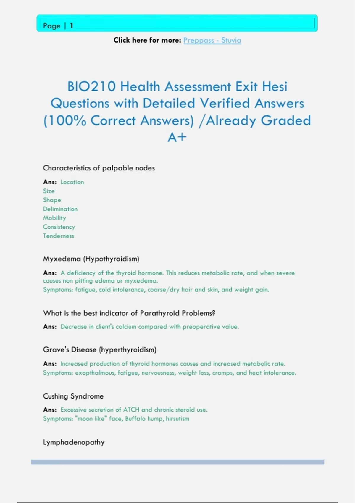 BIO210 Health Assessment Exit Hesi Questions with Detailed Verified Answers (100% Correct Answers) /Already Graded A+