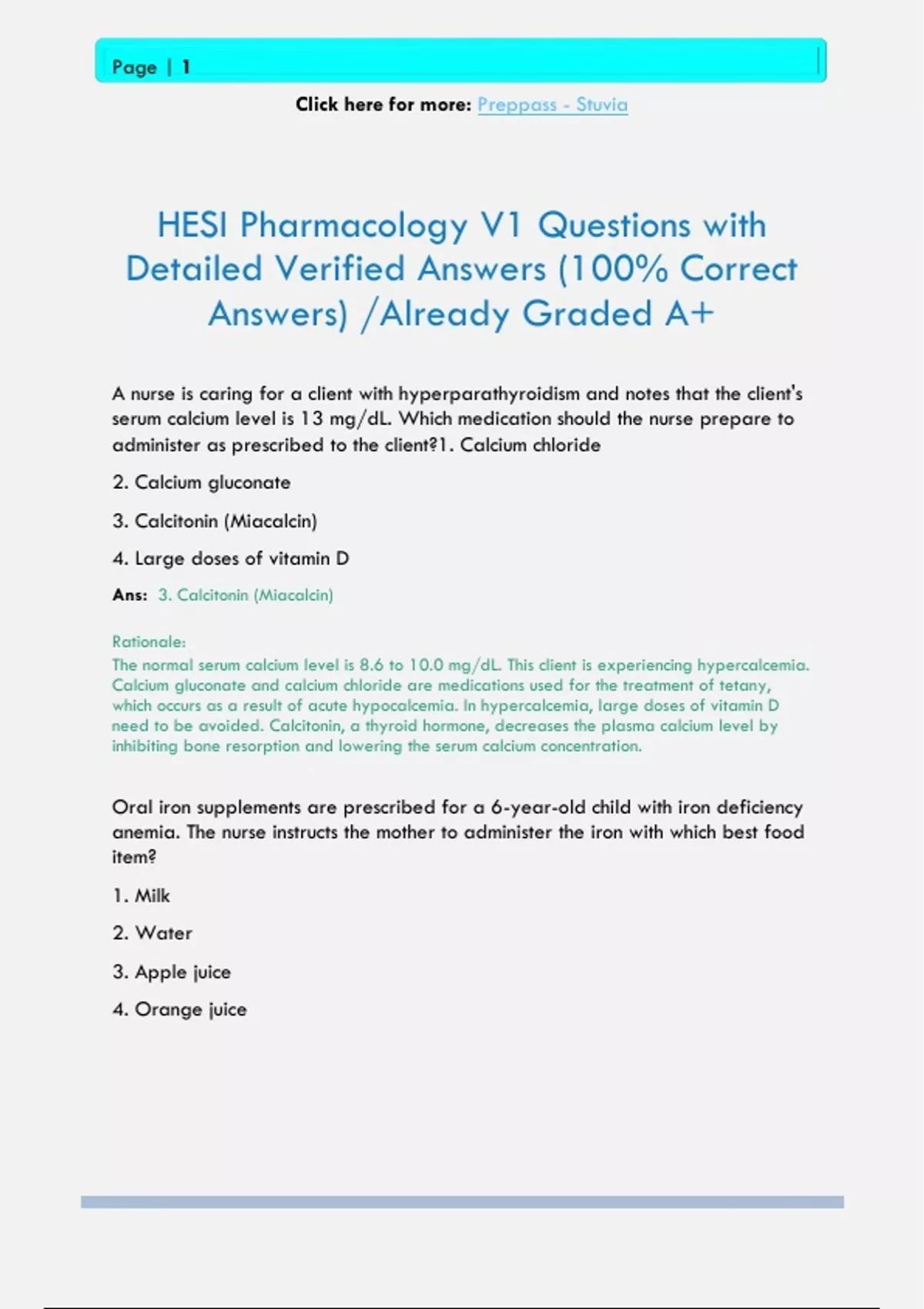 HESI Pharmacology V1 Questions with Detailed Verified Answers (100% Correct Answers) /Already Graded A+