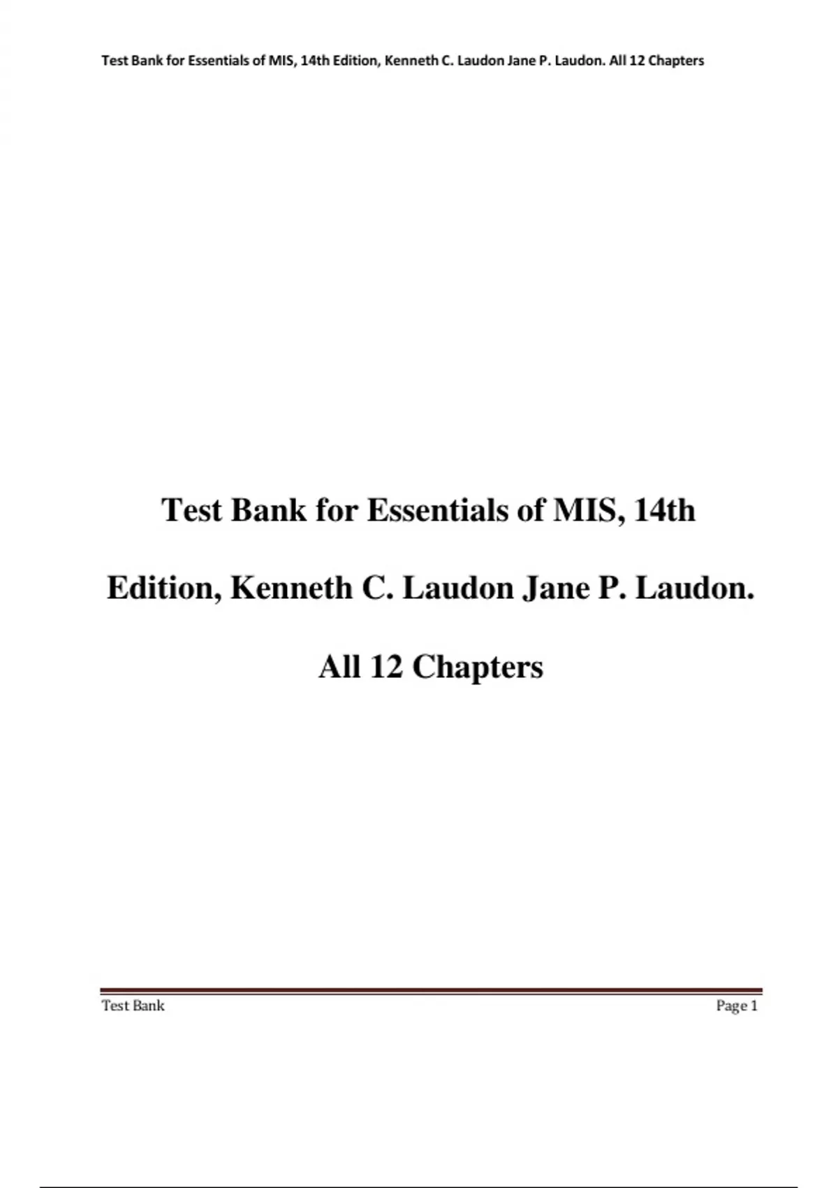 ,Test Bank for Essentials of MIS, 14th Edition, Kenneth C. Laudon Jane P. Laudon. All 12 Chapters