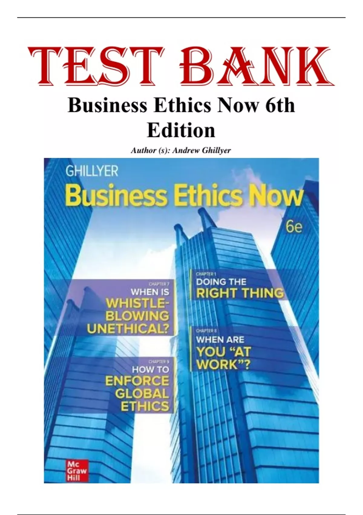 Test Bank for Business Ethics Now 6th Edition by Andrew Ghillyer. Full Chapters Include;.....Part 1: Defining Business Ethics Chapter 1: Understanding Ethics Chapter 2: Defining Business Ethics Part 2: The Practice of Business Ethics Chapter 3: Organizational Ethics Chapter 4: Corporate Social Responsibility Chapter 5: Corporate Governance Chapter 6: The Role of Government Chapter 7: Blowing the Whistle Chapter 8: Ethics and Technology Part 3: The Future of Business Ethics Chapter 9: Ethics and Globalization Chapter 10: Making it Stick: Doing What's Right in aCompetitive Market