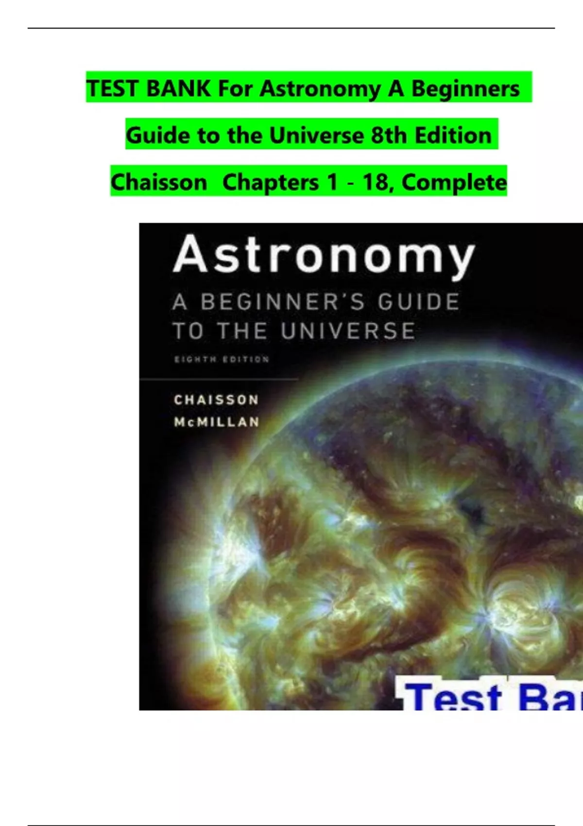 TEST BANK For Astronomy A Beginners Guide to the Universe 8th Edition Chaisson Chapters 1 - 18, Complete