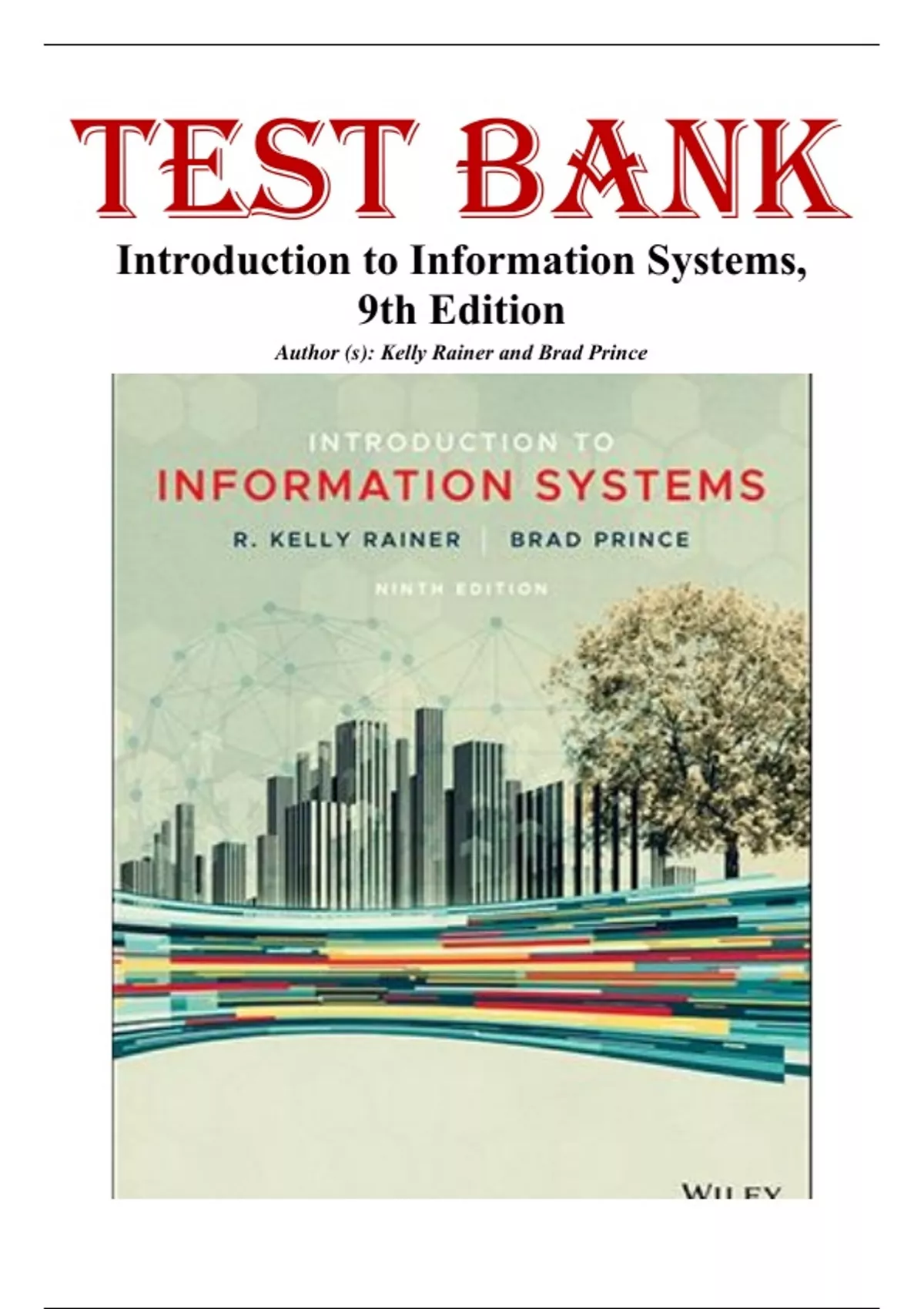 Test Bank for Introduction to Information Systems, 9th Edition ByRainer, Prince. Full Chapters Include;.....Introduction to Information Systems Organizational Strategy, Competitive Advantage, and Information Systems Ethics and Privacy Information Security Data and Knowledge Management Telecommunications and Networking E-Business and E-Commerce Wireless, Mobile Computing, and Mobile Commerce Social Computing Information Systems Within the Organization Customer Relationship Management and Supply Chain Management Business Analytics Acquiring Information Systems and Applications Artificial Intelligence TECHNOLOGY GUIDE 1. Hardware TECHNOLOGY GUIDE 2. Software TECHNOLOGY GUIDE 3. Cloud Computing