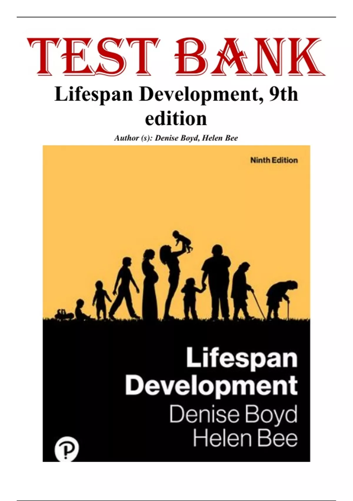 Test Bank for Lifespan Development, 9th edition by Denise Boyd. Full Chapters Inlude;....Basic Concepts and Methods Theories of Development Prenatal Development and Birth Physical, Sensory and Perceptual Development in Infancy Cognitive Development in Infancy Social and Personality Development in Infancy Physical and Cognitive Development in Early Childhood Social and Personality Development in Early Childhood Physical and Cognitive Development in Middle Childhood Social and Personality Development in Middle Childhood Physical and Cognitive Development in Adolescence Social and Personality Development in Adolescence Physical and Cognitive Development in Early Adulthood Social and Personality Development in Early Adulthood Physical and Cognitive Development in Middle Adulthood Social and Personality Development in Middle Adulthood Physical and Cognitive Development in Late Adulthood Social and Personality Development in Late Adulthood Death, Dying and Bereavement