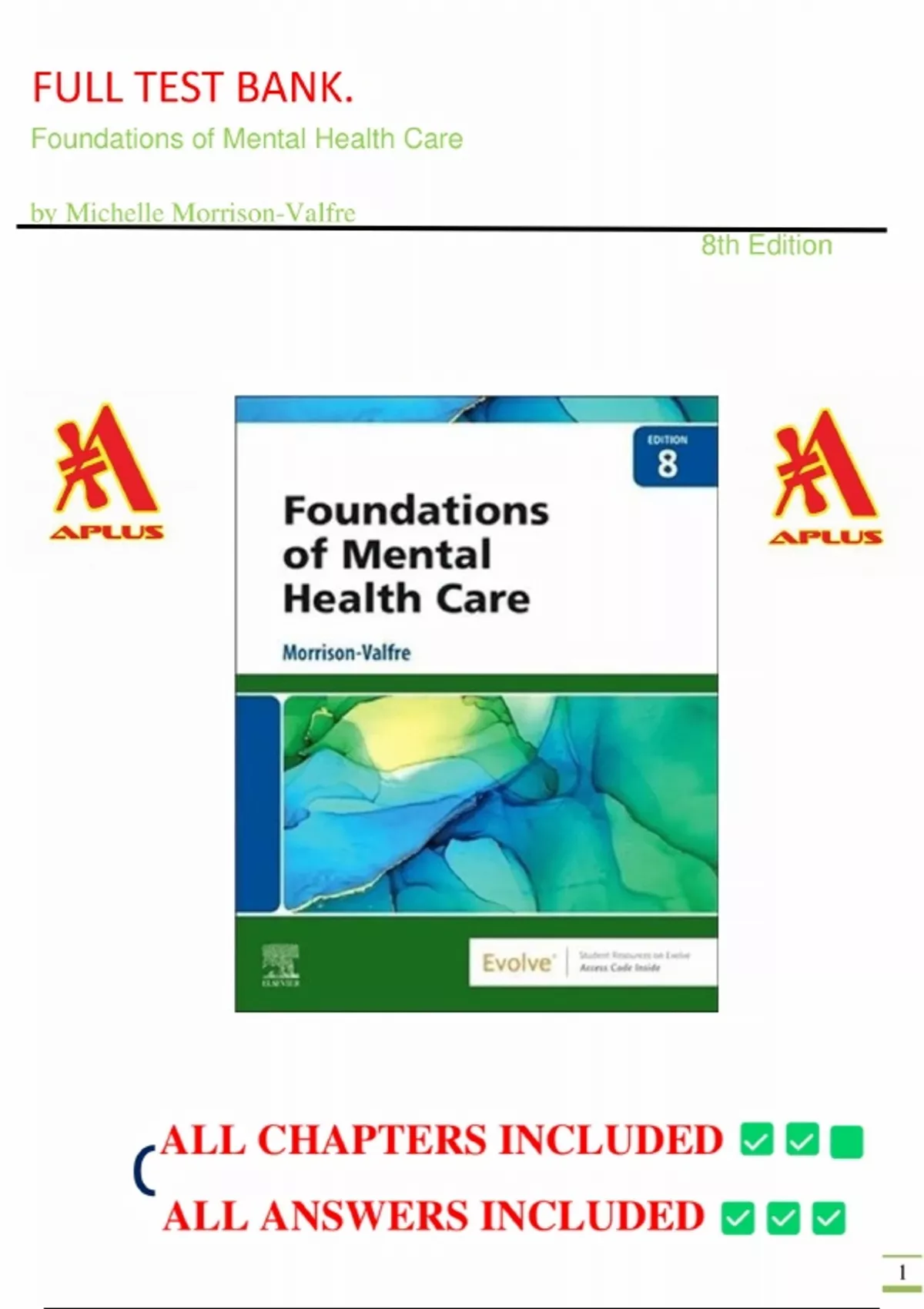 TEST BANK Foundations of Mental Health Care (8TH) by Michelle Morrison-Valfre||All Chapter 1-33||LATEST UPDATE.