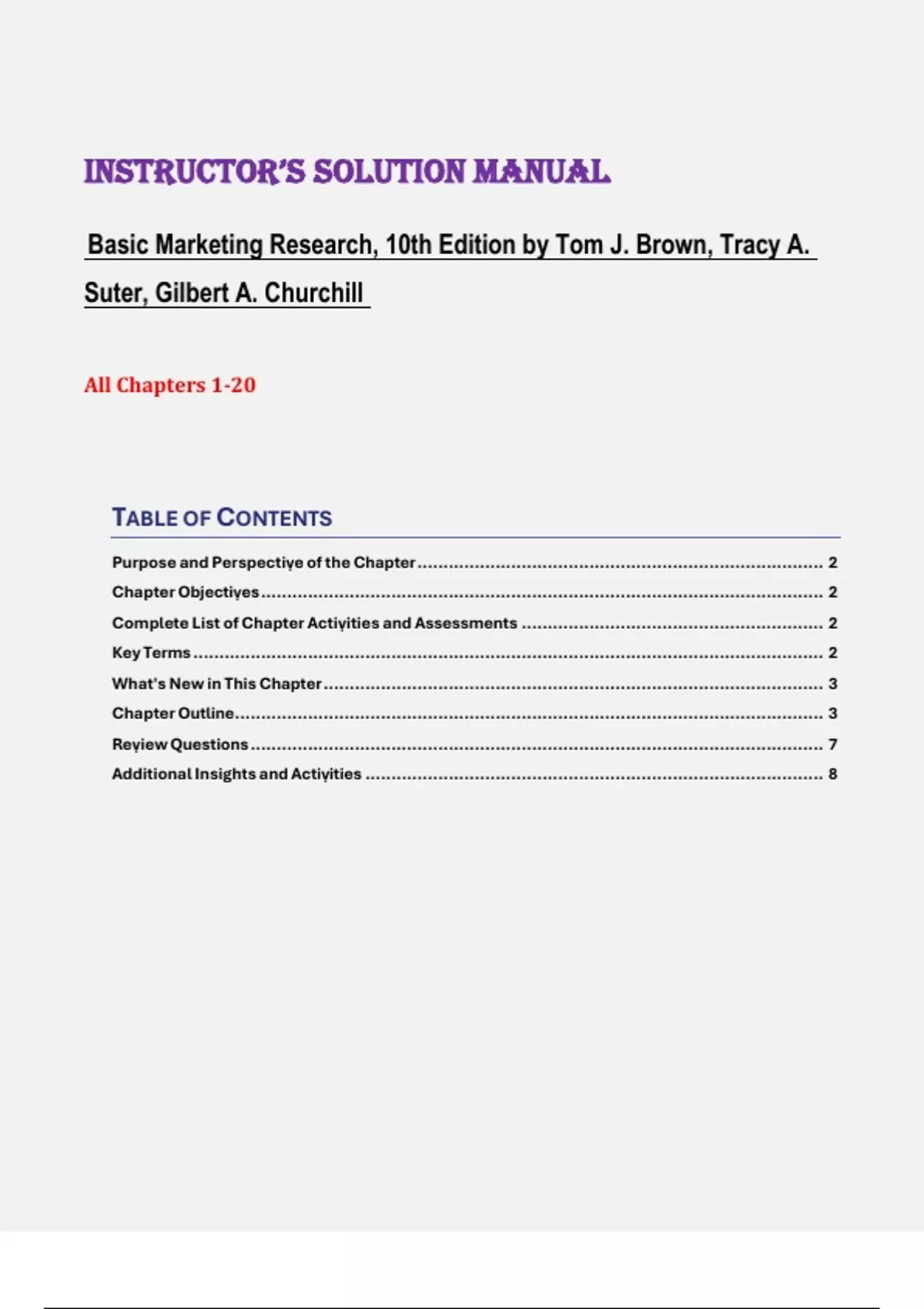 Instructor’s solution Manual for Basic Marketing Research, 10th Edition by Tom J. Brown, Tracy A. Suter, Gilbert A. Churchill All Chapters 1-20