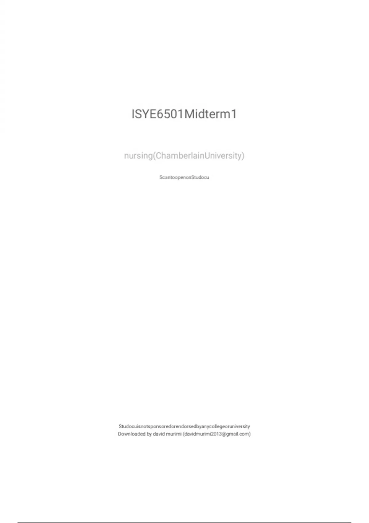 Exam of 55 pages for the course ISYE6501 at ISYE6501 (ISYE6501Midterm1)