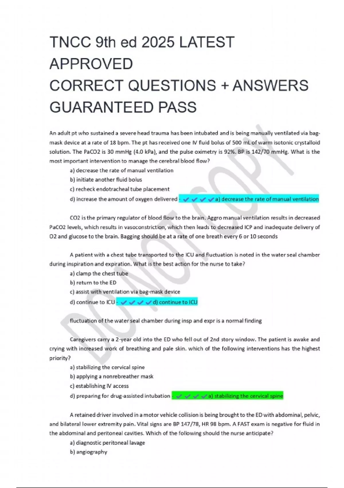 TNCC 9th ed 2025 LATEST APPROVED CORRECT QUESTIONS + ANSWERS GUARANTEED PASS
