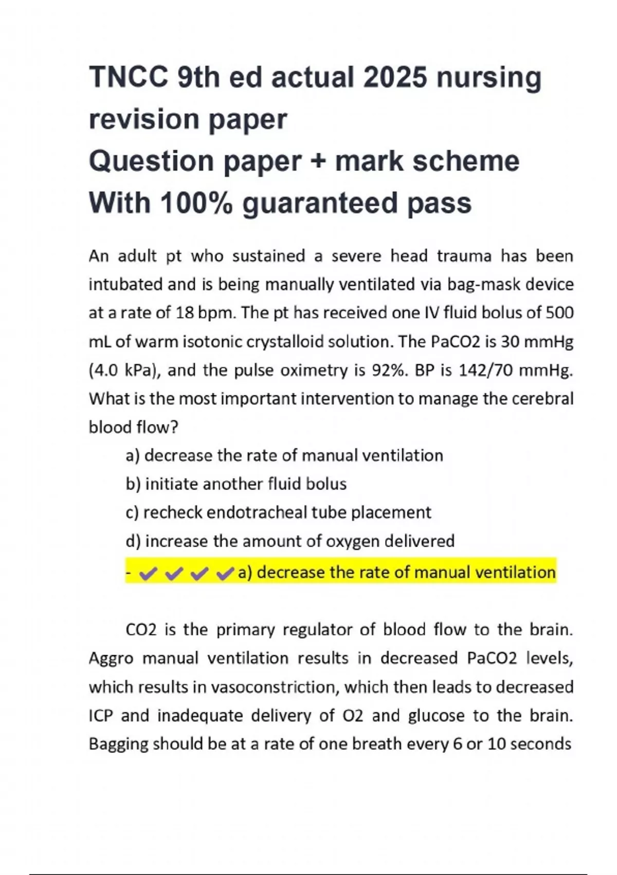 TNCC 9th ed actual 2025 nursing revision paper Question paper + mark scheme With 100% guaranteed pass