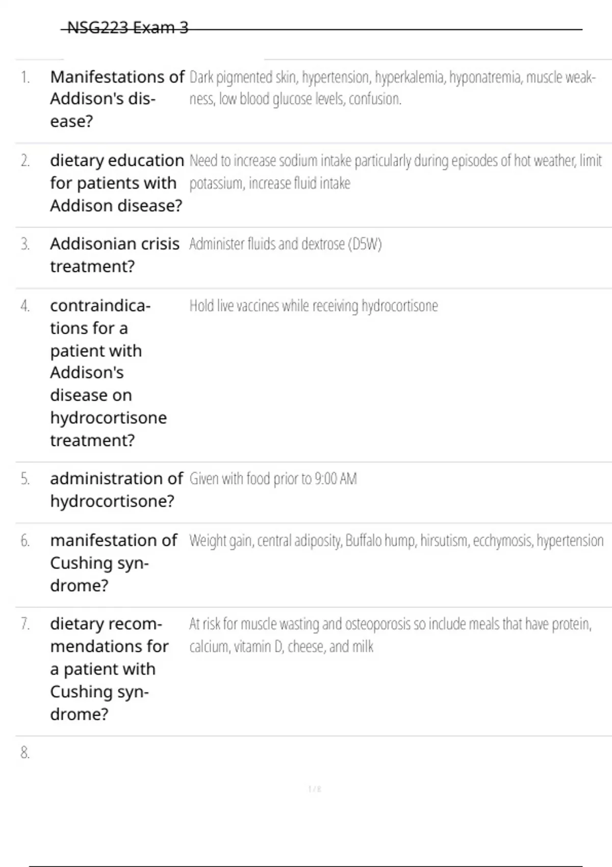 1. Manifestations of Dark pigmented skin, hypertension, hyperkalemia, hyponatremia, muscle weak-