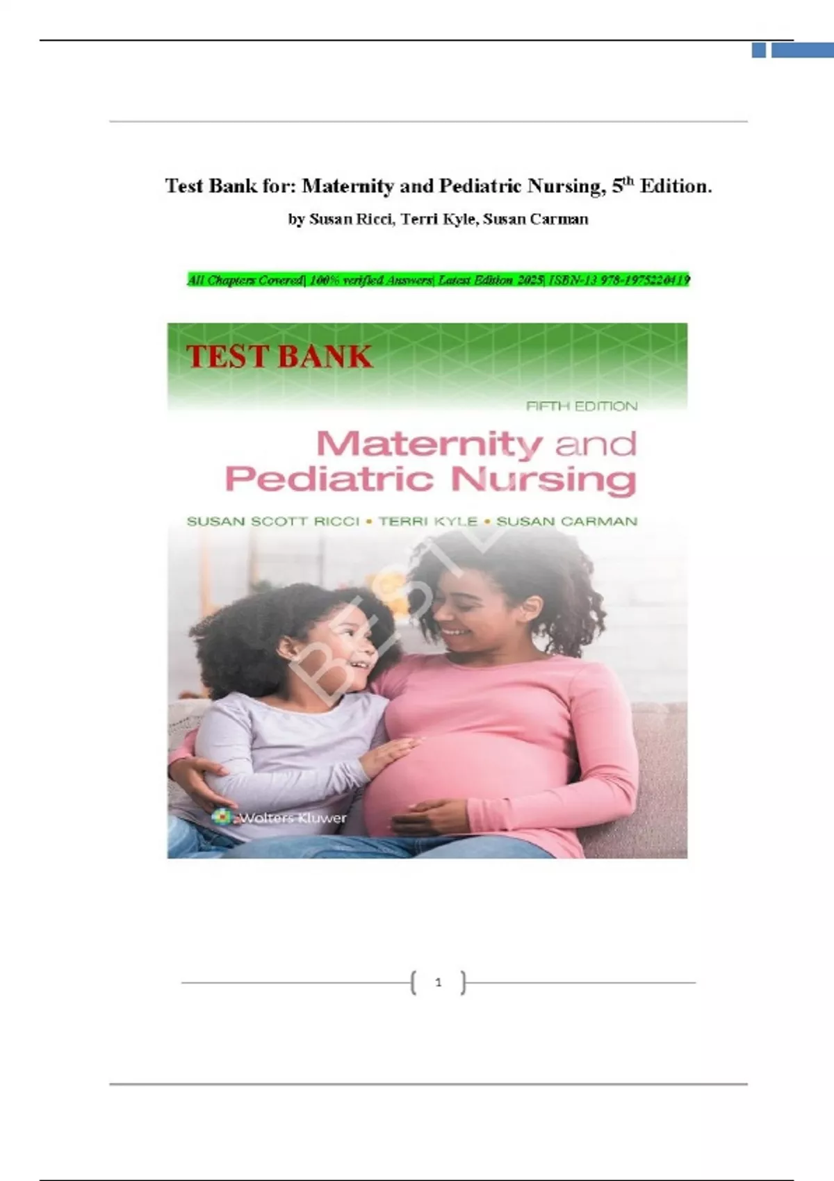Test Bank for Maternity and Pediatric Nursing, 5th Edition. by Susan Ricci, Terri Kyle, Susan Carman. All Chapters Covered| 100% verified Answers