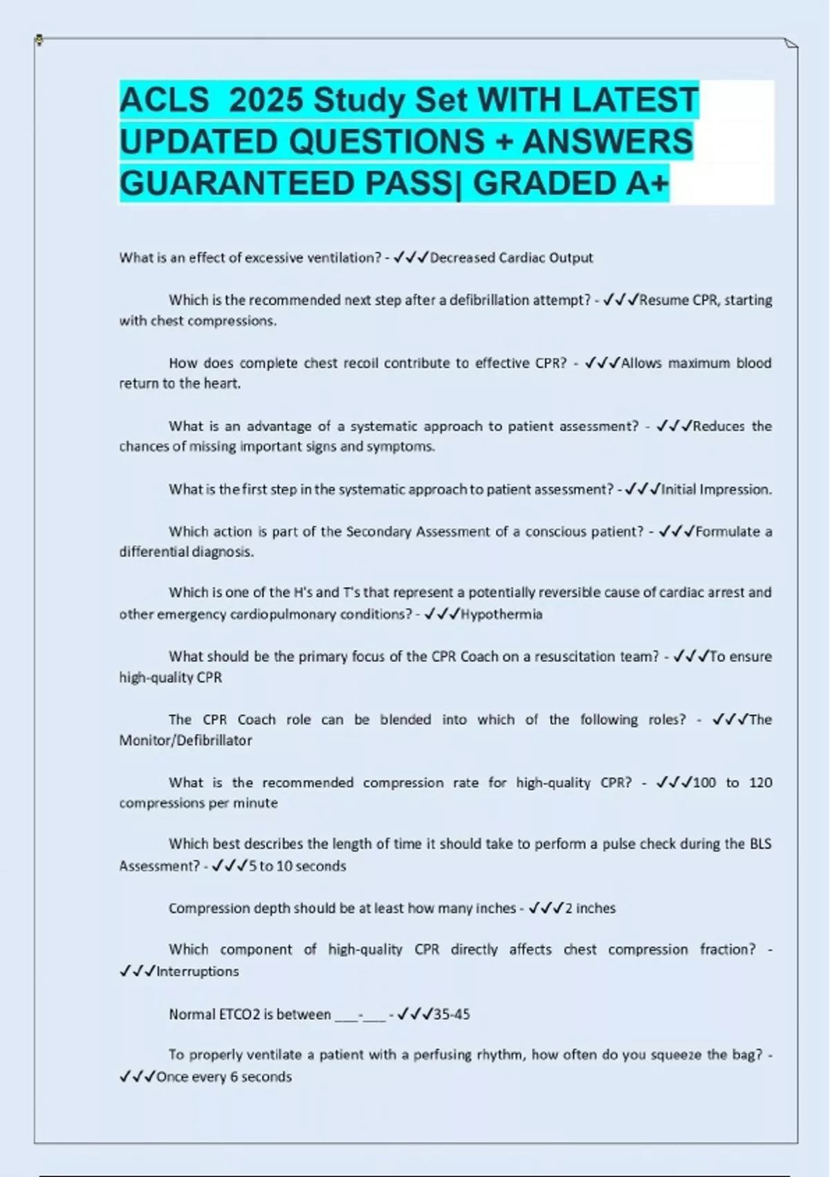ACLS 2025 Study Set WITH LATEST UPDATED QUESTIONS + ANSWERS GUARANTEED PASS| GRADED A+