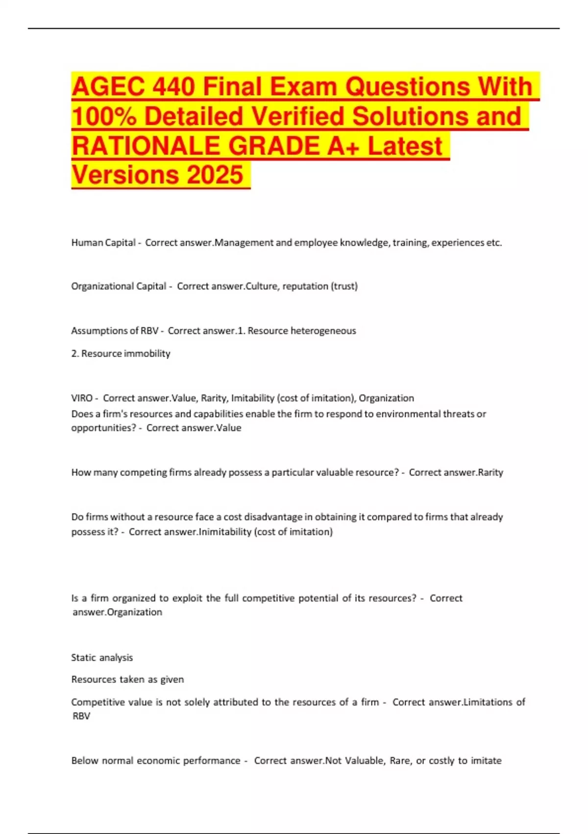 AGEC 440 Final Exam Questions With 100- Detailed Verified Solutions and RATIONALE GRADE A+ Latest