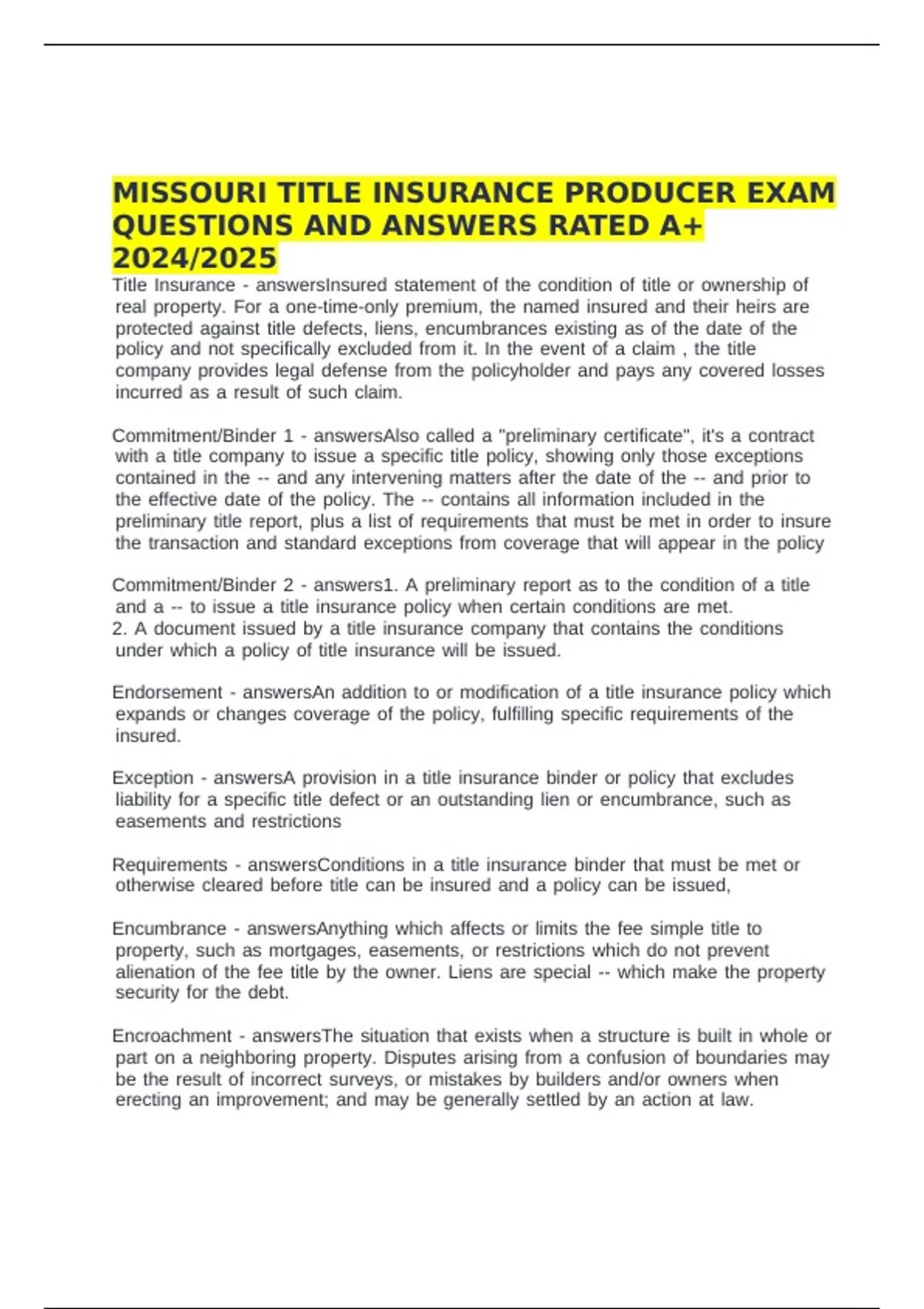 Requirements f- fanswersConditions fin fa ftitle finsurance fbinder fthat fmust fbe fmet for