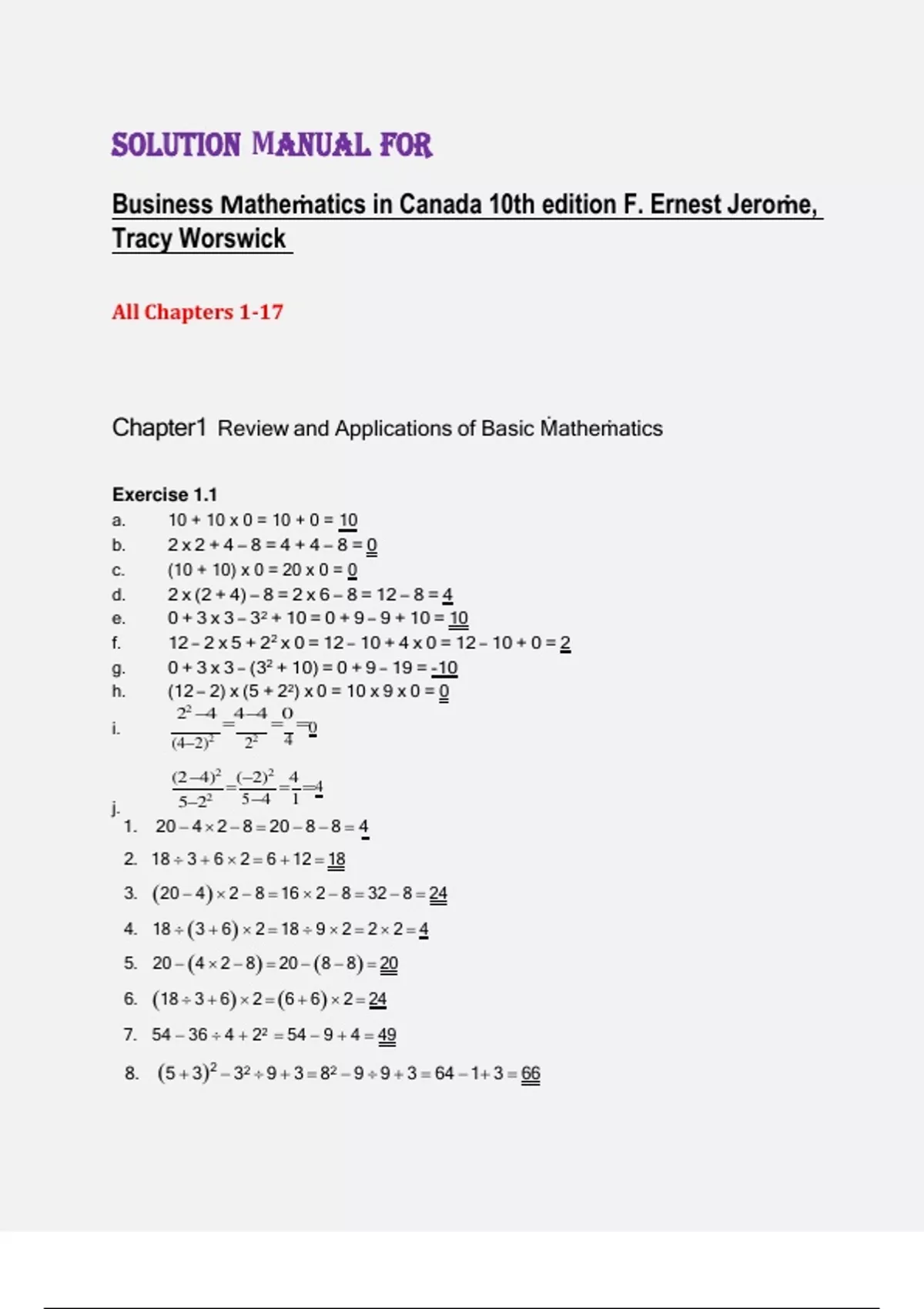 a. 10 + 10 x 0 = 10 + 0 = 10