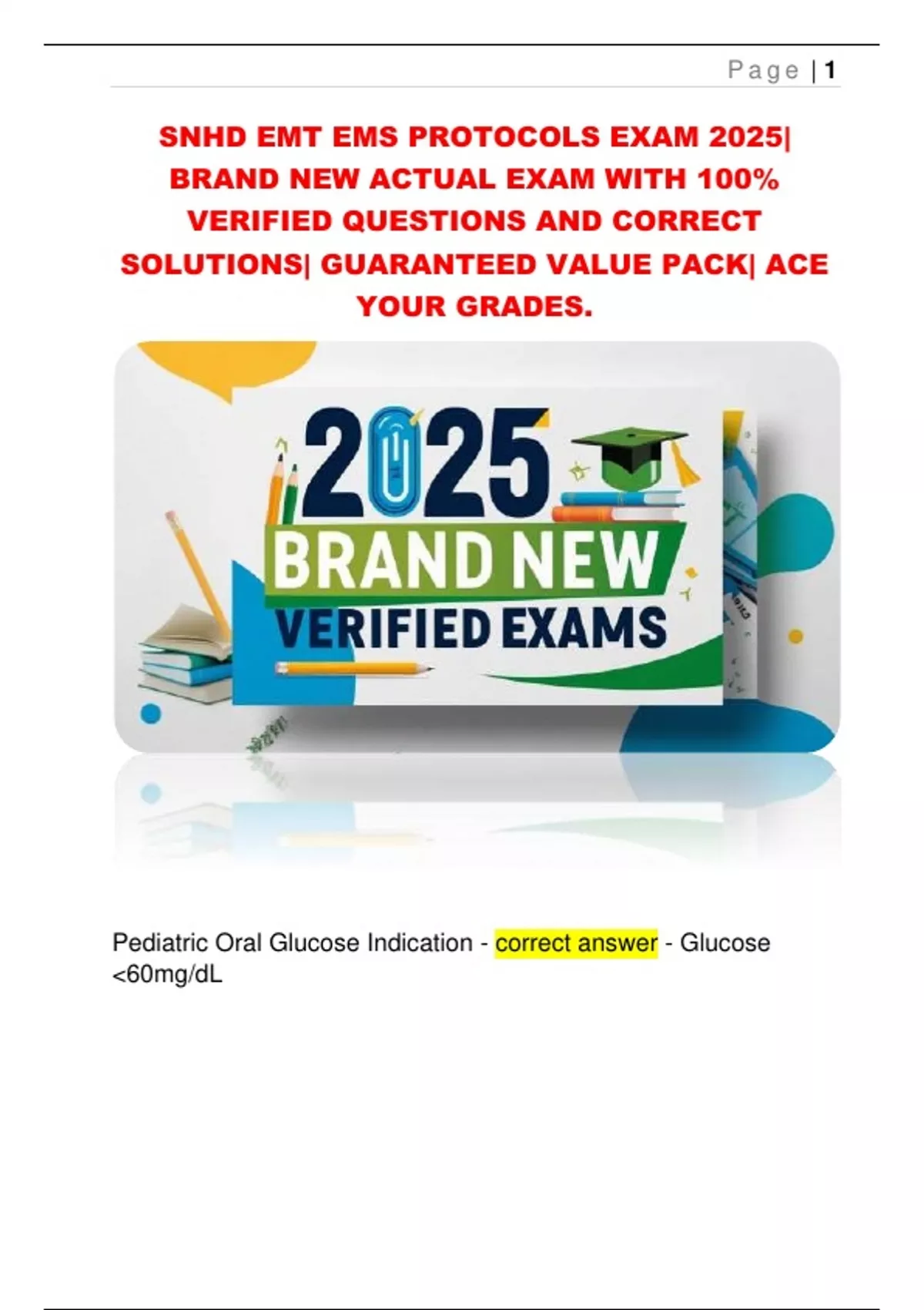 SNHD EMT EMS PROTOCOLS EXAM 2025| BRAND NEW ACTUAL EXAM WITH 100% VERIFIED QUESTIONS AND CORRECT SOLUTIONS| GUARANTEED VALUE PACK| ACE YOUR GRADES.