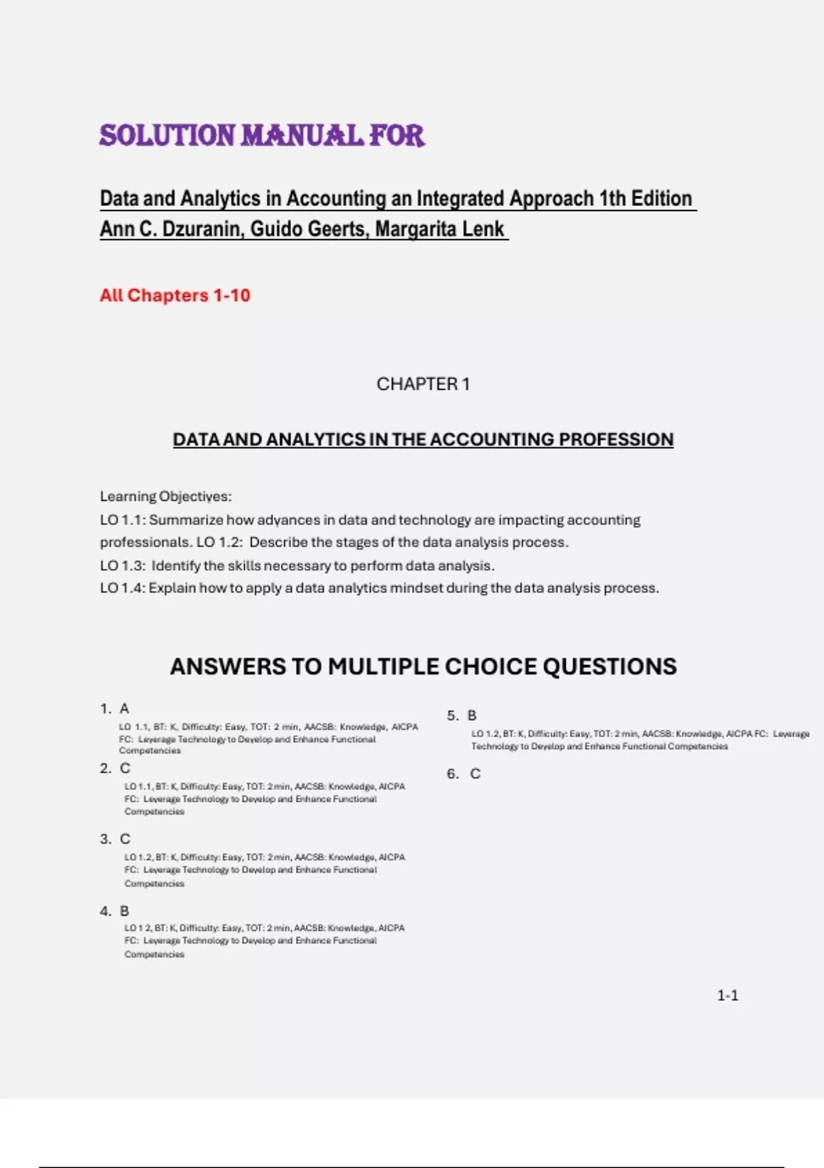 LO 1 2, BT: K, Difficulty: Easy, TOT: 2 min, AACSB: Knowledge, AICPA