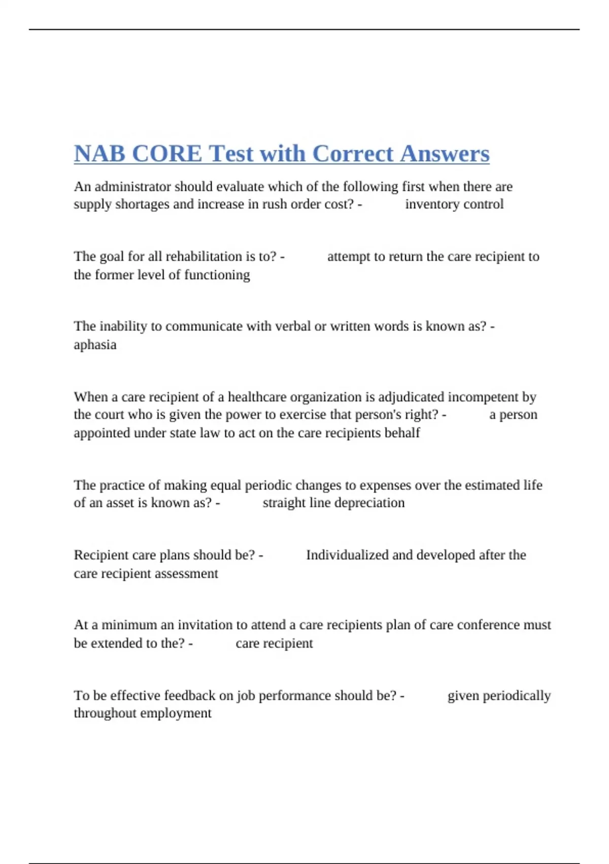 NAB CORE Test with Correct Answers