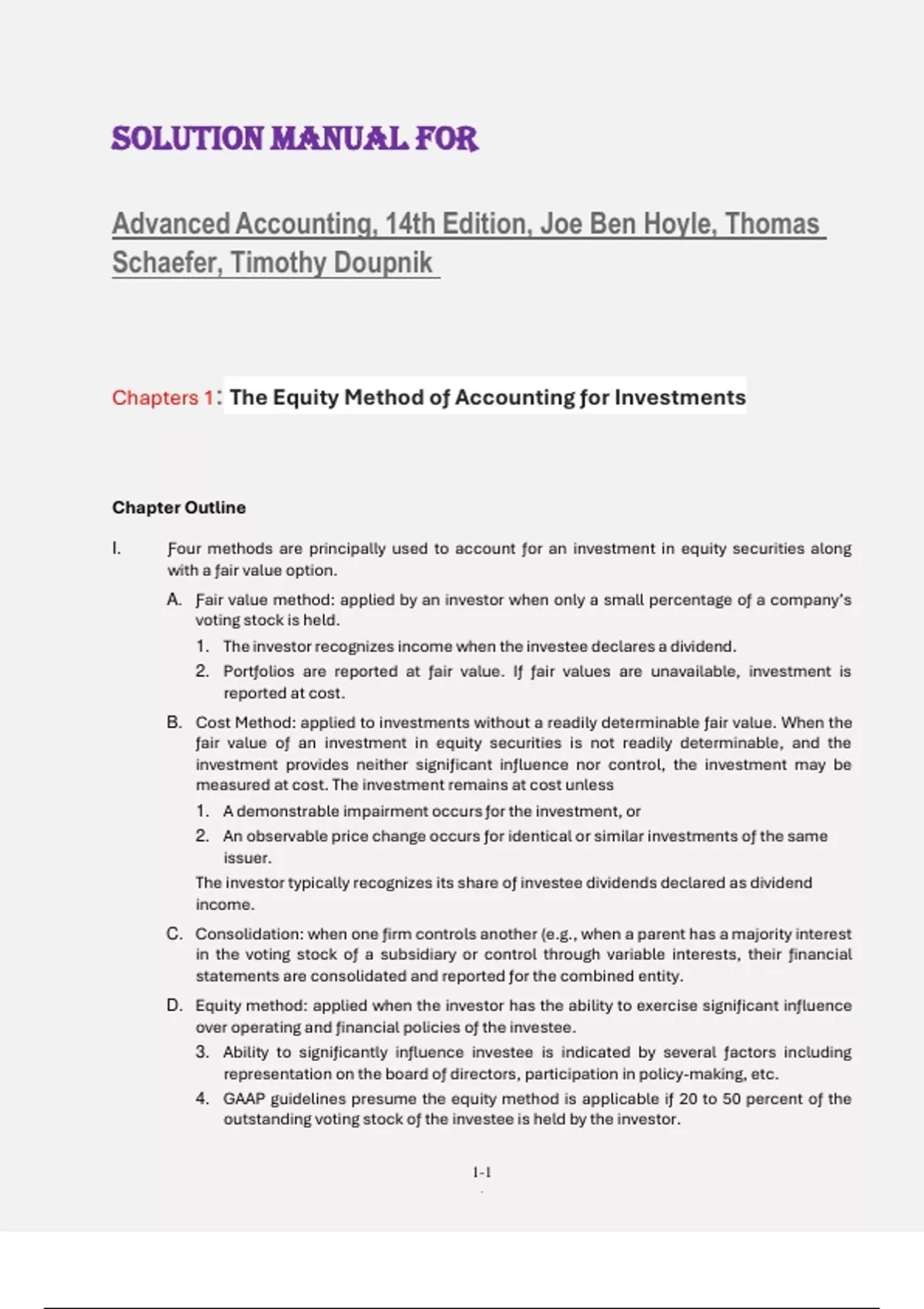 Chapters 1: The Equity Method oƒ Accounting ƒor Investments