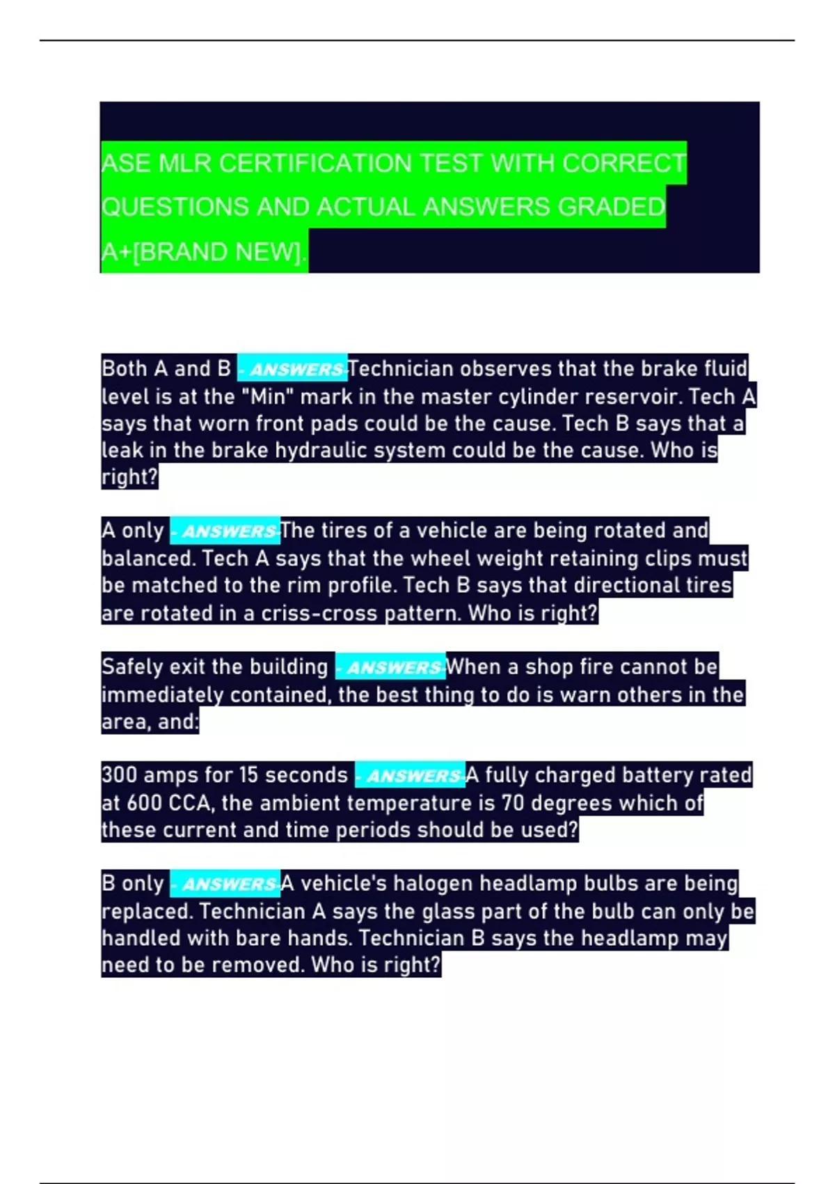 ASE MLR CERTIFICATION TEST WITH CORRECT