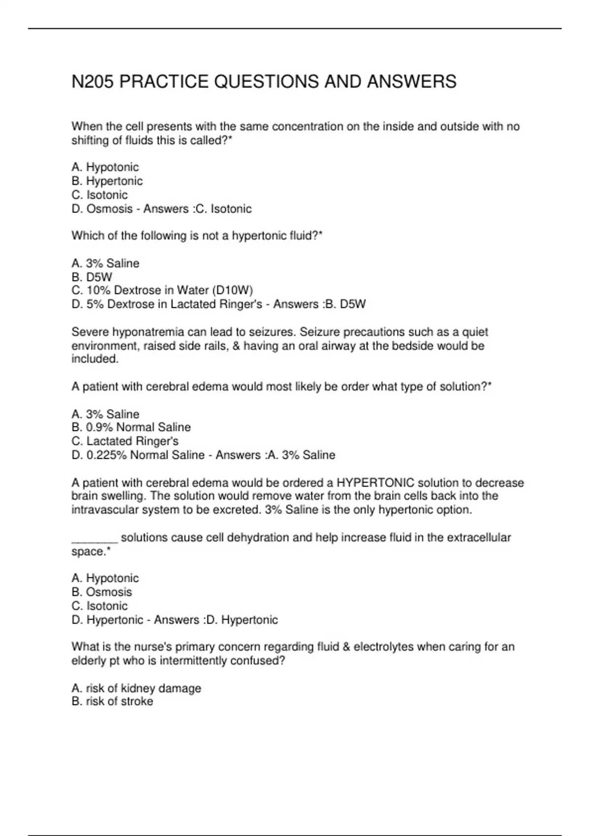 N205 PRACTICE QUESTIONS AND ANSWERS