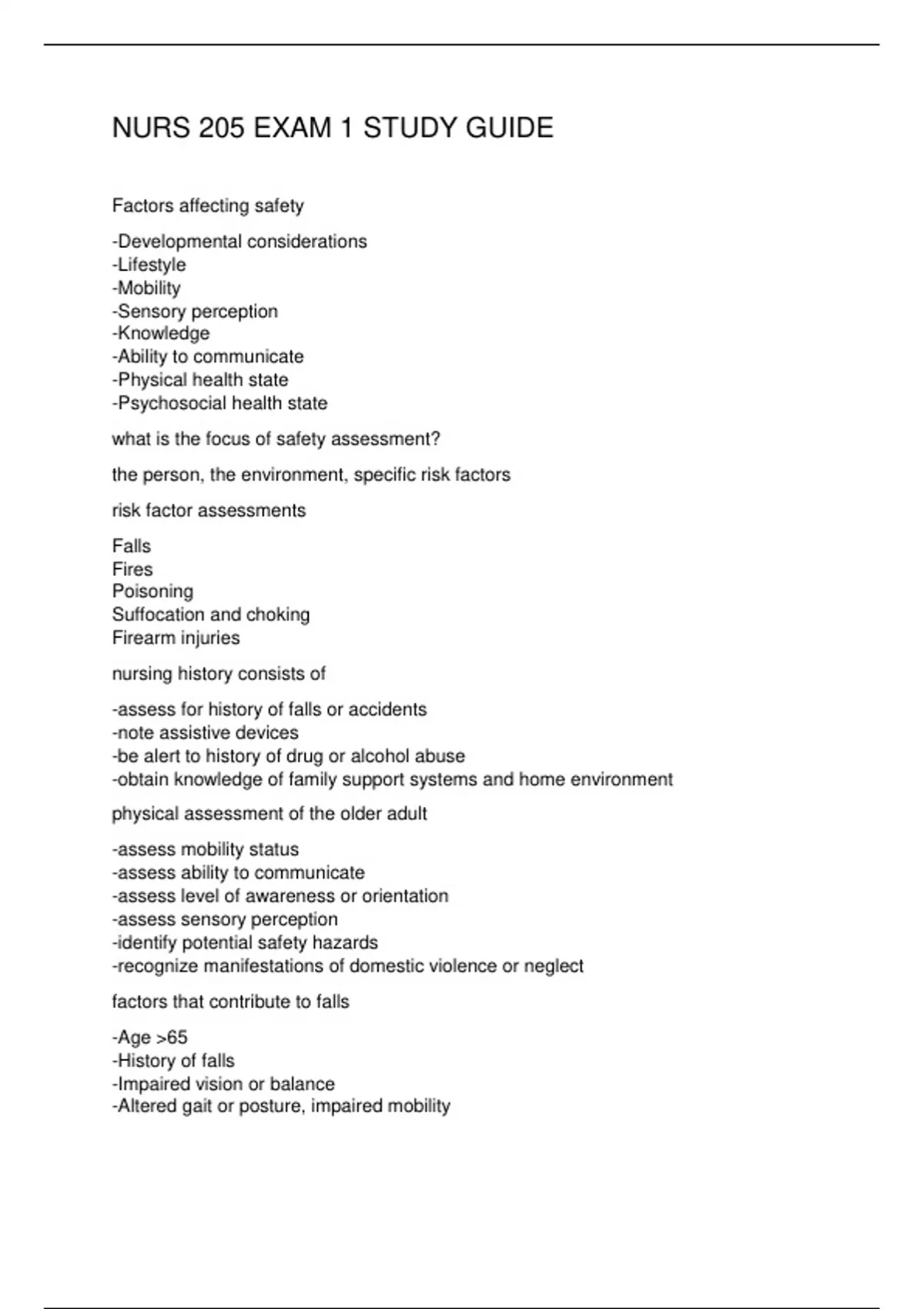 NURS 205 EXAM 1 STUDY GUIDE