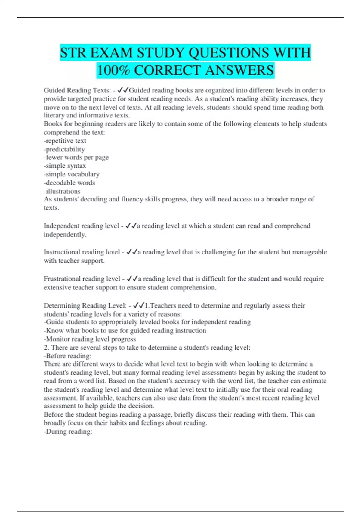 STR EXAM STUDY QUESTIONS WITH