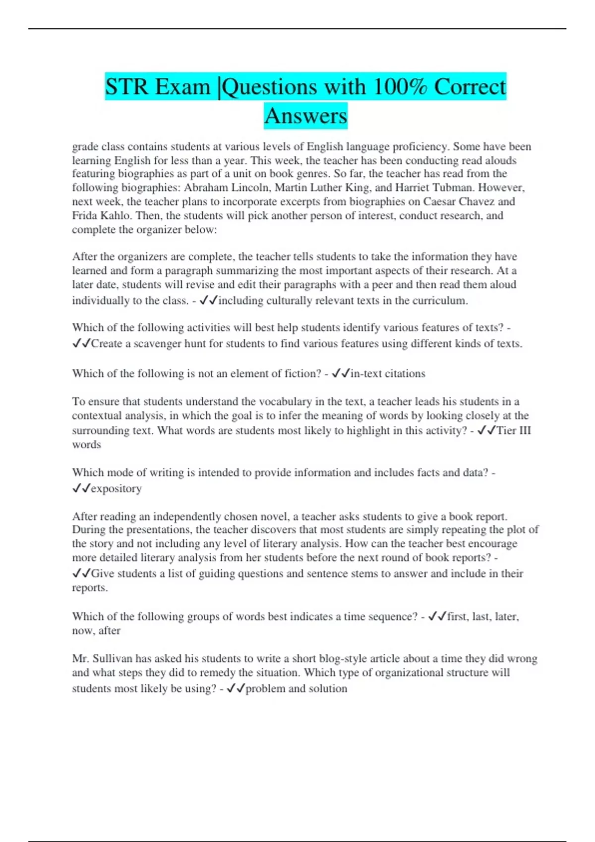 STR Exam |Questions with 100% Correct Answers