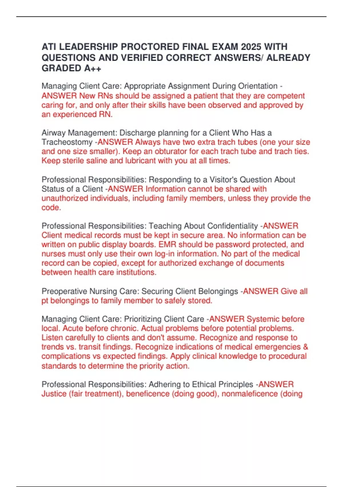 ATI LEADERSHIP PROCTORED FINAL EXAM 2025 WITH