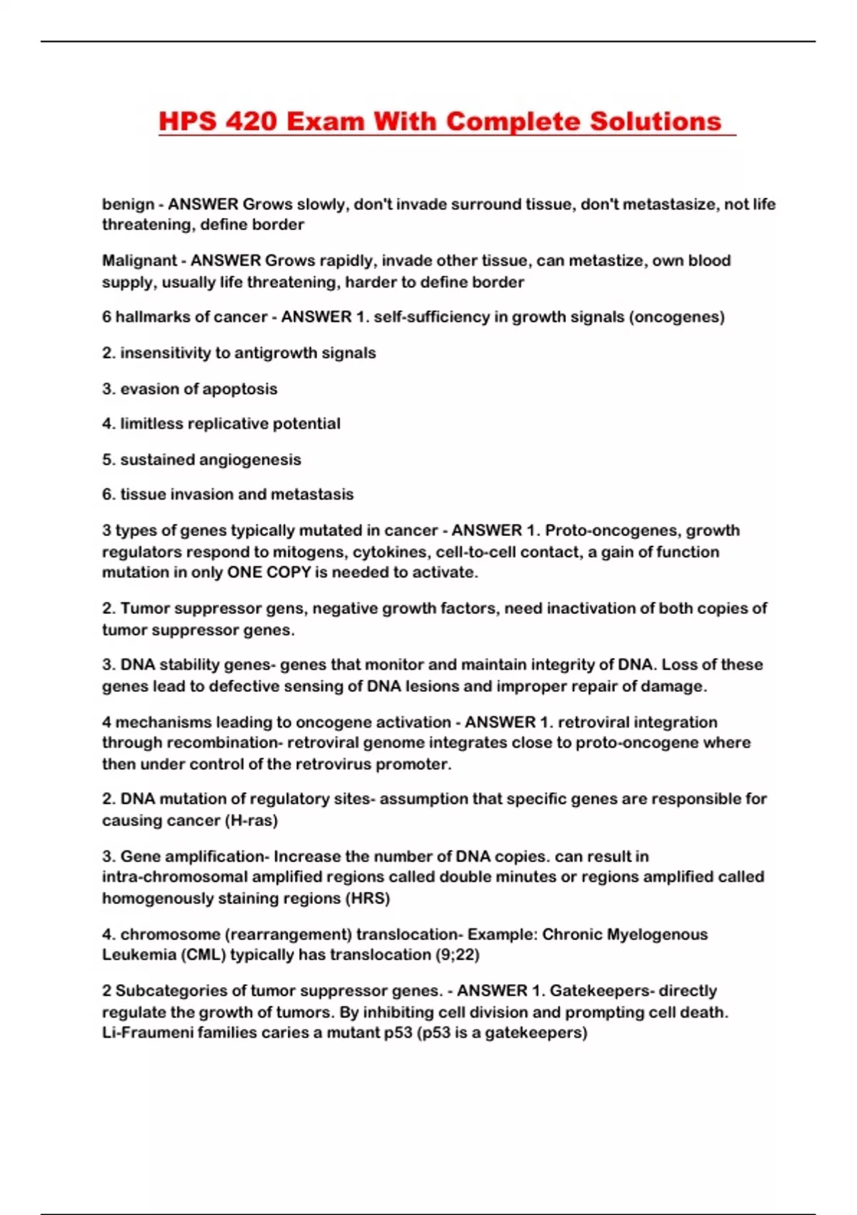 benign - ANSWER Grows slowly, don't invade surround tissue, don't metastasize, not life